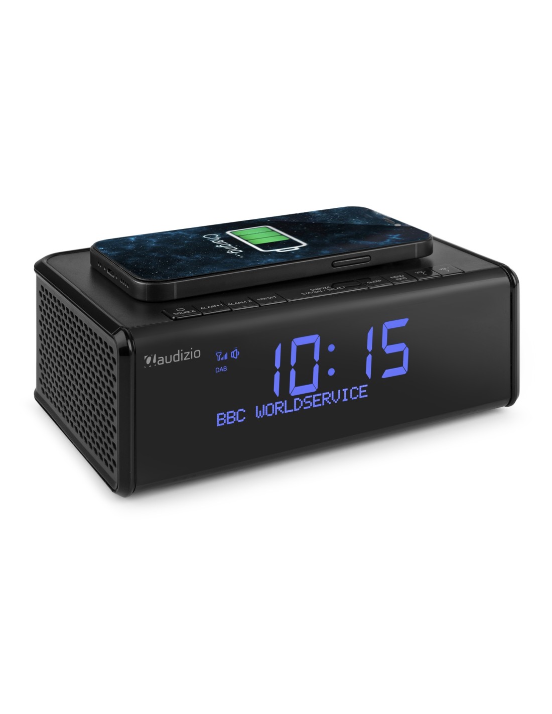 Comience bien el día con la radio de cabecera compacta Cuneo, con un sonido nítido, función de alarma y una pantalla de reloj las 24 horas. La función de escaneo automático también le permite encontrar fácilmente sus emisoras FM o DAB + favoritas, también es posible transmitir música de forma inalámbrica a través de BT. Todas las bases básicas de radio reloj están cubiertas: doble activación para múltiples tiempos de alarma, dormir y posponer, una batería de respaldo sin preocupaciones y 2 opciones para despertar (radio + o alarma). Los Cuneo incluyen una práctica plataforma de carga inalámbrica que es rápida y fácil de usar. Simplemente coloque su teléfono inteligente en la plataforma de carga* para cargarlo, sin necesidad de enchufarlo.