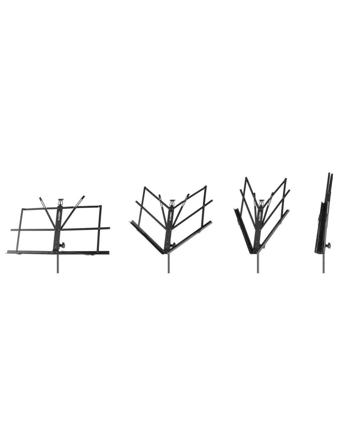Soporte de partituras extra solido enteramente plegable.