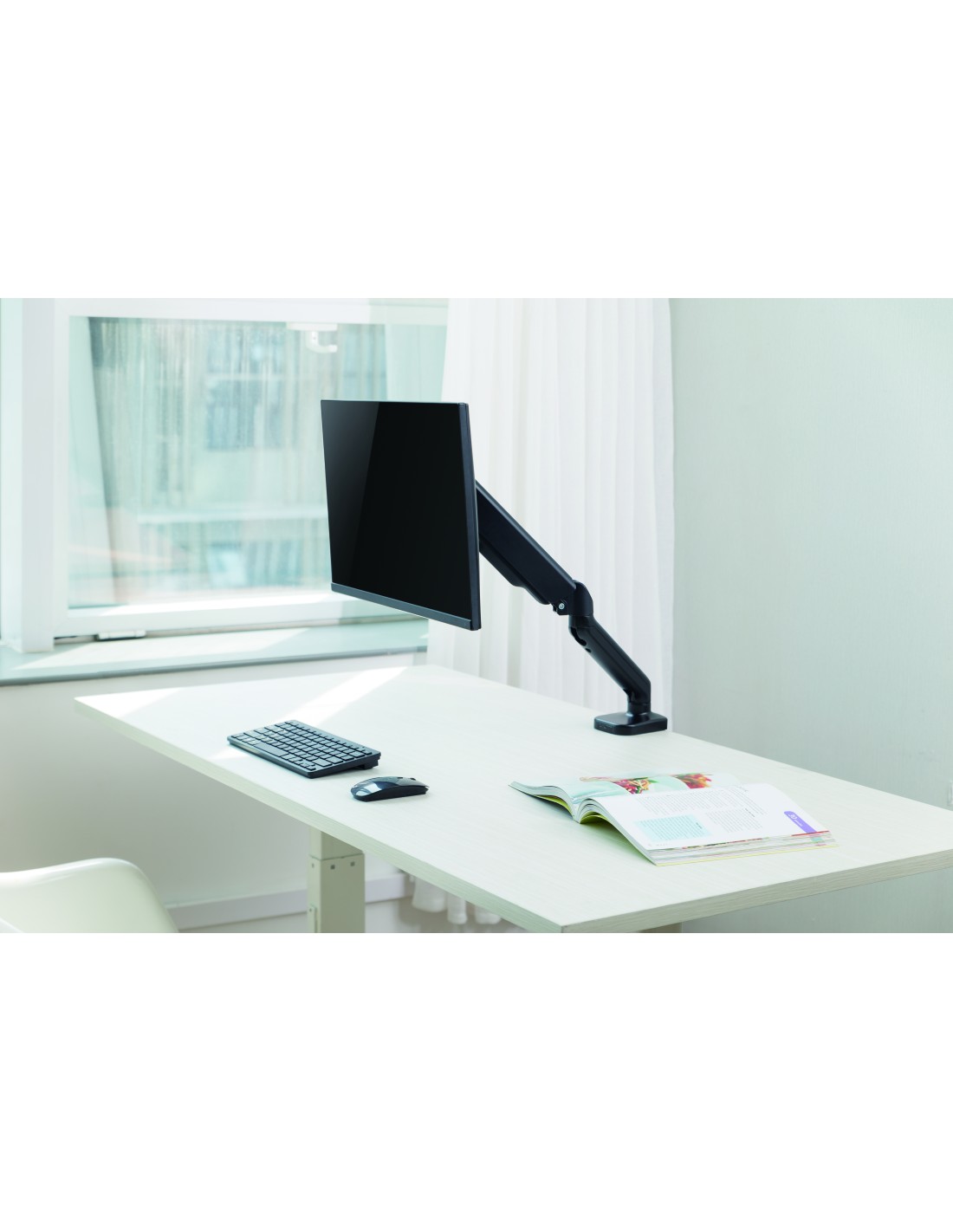La serie MAD-G de brazos para monitor con amortiguador de gas son fuertes en apariencia y robustos en prestaciones. Con un solo dedo, el mecanismo de alta calidad de amortiguación por gas, permite mover el monitor, incluso arriba y abajo, extendiendo y retrayendo hasta encontrar la posición ergonómica idónea del monitor. El Soporte VESA permite un montaje y desmontaje rápido. La pinza para la mesa y accesorios están incluidos. El cable queda recogido en el brazo dando un área de trabajo muy limpia. VESA compatible con 75x 75 y 100x 100.