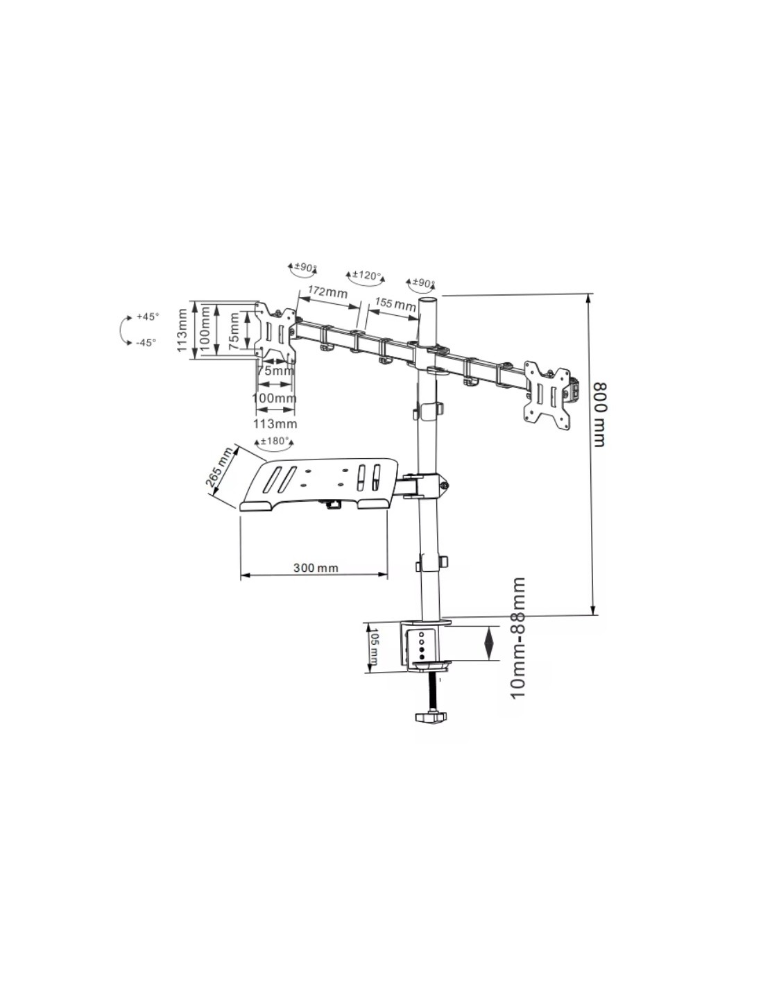 La serie CMA son brazos para monitor con doble codo para permitir el ajuste exacto de la posición de los monitores. Fabricado en acero de alta resistencia, es resistente a ralladas y soporta monitores de 8kg y 32". El panel VESA es desconectable para poder atornillar fácilmente los monitores al panel y deslizarlos en el alojamiento. El conjunto puede rotar y posicionarse en cualquier dirección, permitiendo la visión angulada. También puede ajustar en vertical el monitor hasta la posición deseada. Un clip de cables permite organizar y proteger las conexiones. VESA compatible con 75x 75 y 100x 100.