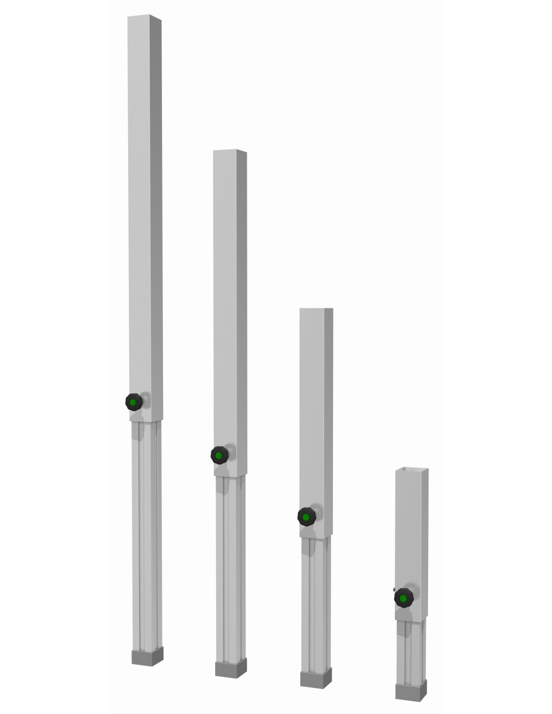 Pata ajustable de 60x60mm para tarima Deck750. Cada pata incorpora una regla para facilitar el posicionamiento a la altura deseada. Disponible en diversas alturas para usar en interior y exterior.