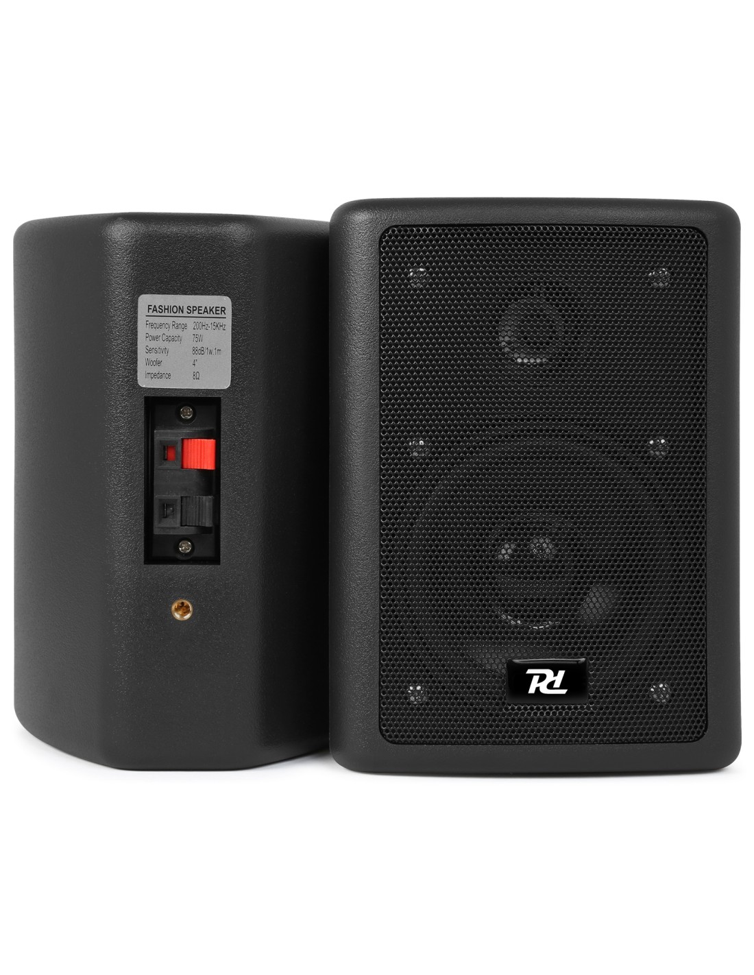 Una pareja compacta de altavoces estereo 2-vias de alta potencia apropiado para aplicaciones de Alta Fidelidad y sonido envolvente. Sistema bajo reflex que consiste en un woofer 4\ con cono PP y un tweeter 3/4\" poli-carbonato. Ideal para uso independiente o conjuntamente con el altavoz central de arriba Se suministra por pareja y con soportes de montaje."