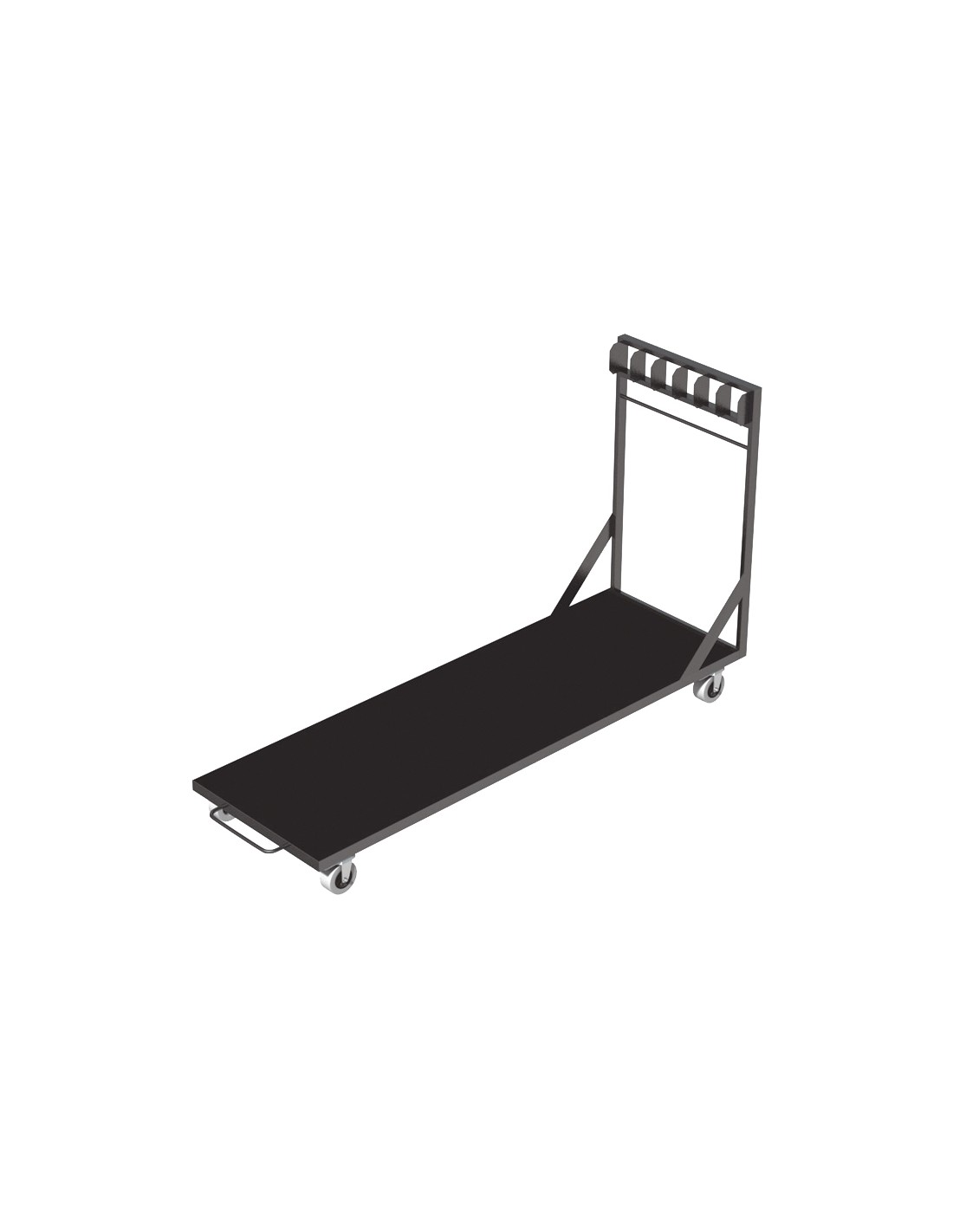 Este trolley puede transportar 6 tarimas Deck750 en vertical. La forma ideal para transportar tarimas de forma rapida y segura.