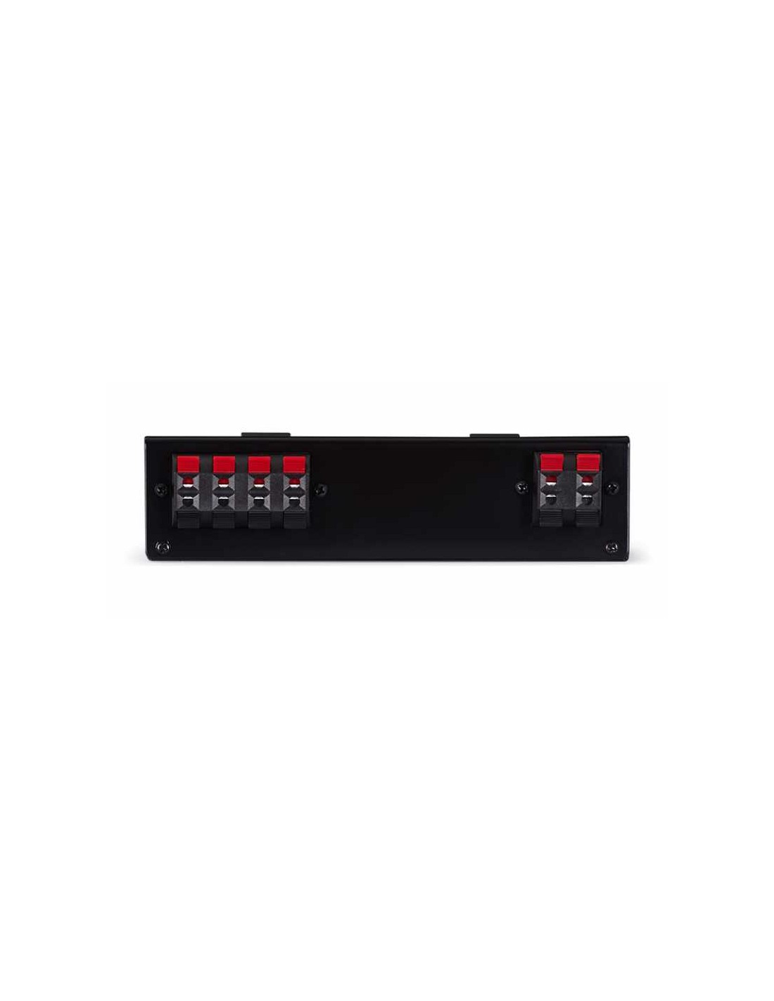 Selector de 2 vías estéreo para dos parejas de bafles. Convierte 1 salida en 2. Selección por conmutadores. Conexión por terminales a presión. Para altavoces de baja Z 4-8 Ω.