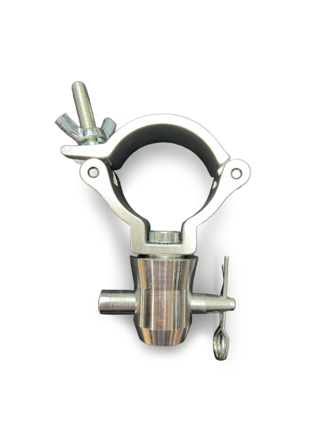 Garra de acoplamiento universal compacto de aluminio para montar equipos en tubos y truss. Fabricado en aluminio de alta resistencia.