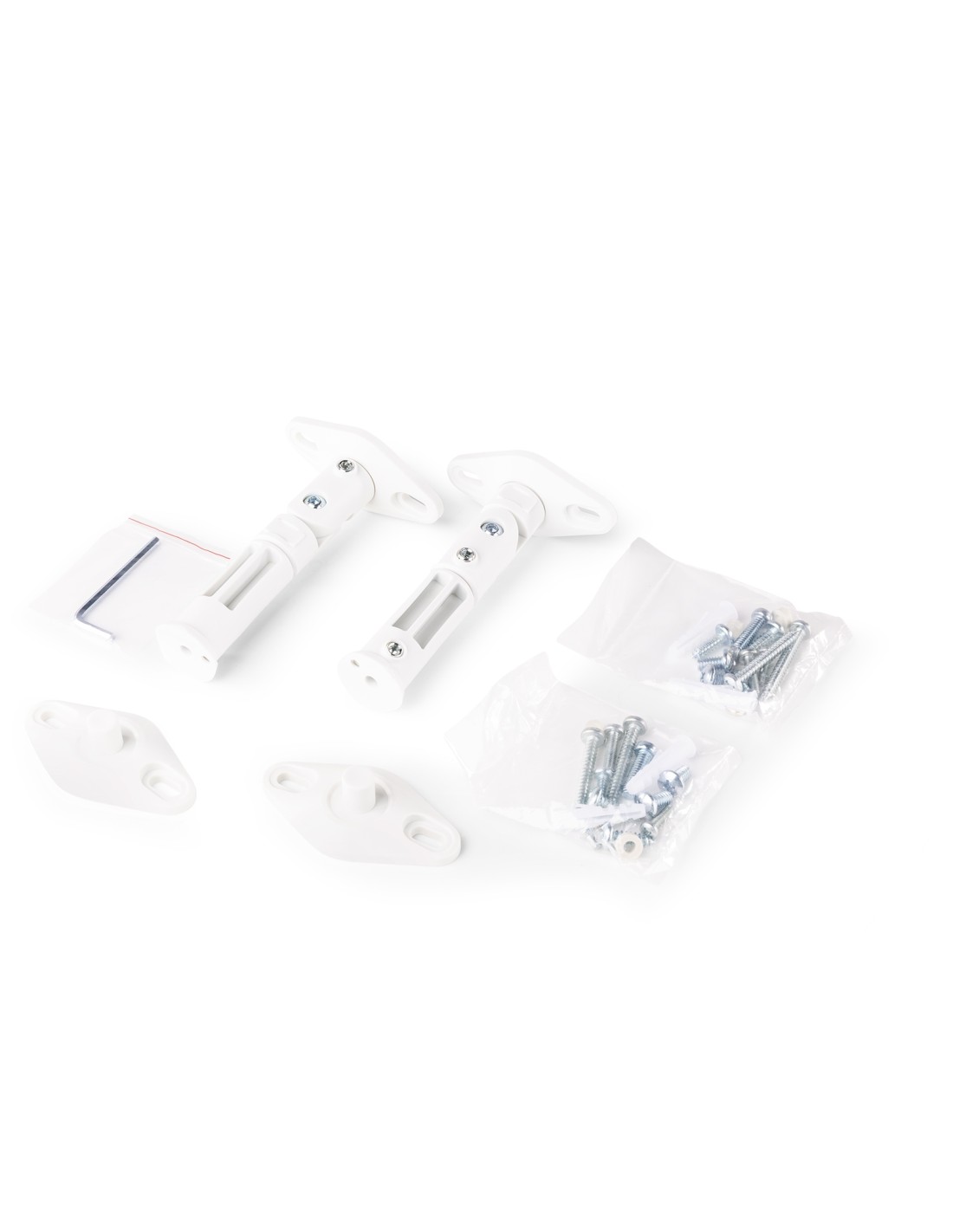 El HTS20 es un soporte universal de pared / techo para altavoces satélite de hasta 3,5 kg. La placa de montaje en la que está montado el altavoz tiene dos orificios para tornillos. Esto permite fijar tornillos a una distancia mínima de 52,5 mm y una distancia máxima de 67,5 mm entre sí. La distancia máxima es de 154 mm desde la pared o el techo. Este sistema de suspensión permite que sus altavoces se inclinen y giren sin esfuerzo para crear las condiciones de sonido más ideales.