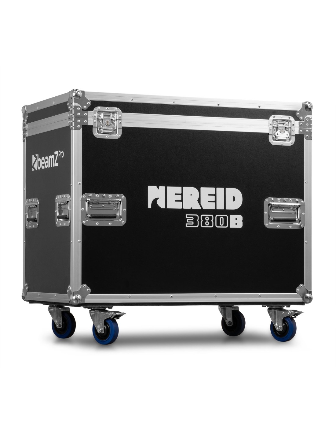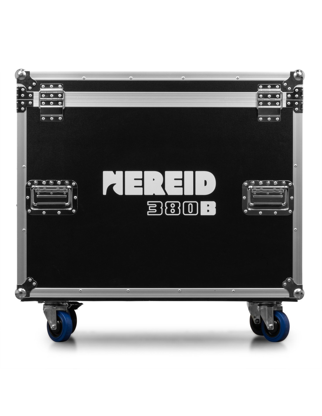 Este Flightcase FC380B es la solución perfecta para transportar de forma segura 2 unidades de cabezas móviles Nereid380. Este maletín de viaje duradero con asas es la solución perfecta para uso móvil. Este estuche tiene capacidad para 2 unidades y con espacio suficiente para todos los cables de alimentación y soportes.