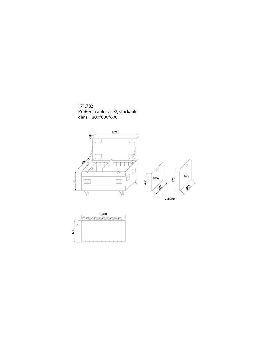 Caja de transporte solida para cables y todos los accesorios. No mas cables, bridas, y accesorios tirados por ahi. Fabricada en madera laminada plywood con asas retraibles, palomillas de cierre y ruedas de 3.5 " (2 con freno). Se suministra con 2 paneles de separacion moviles.