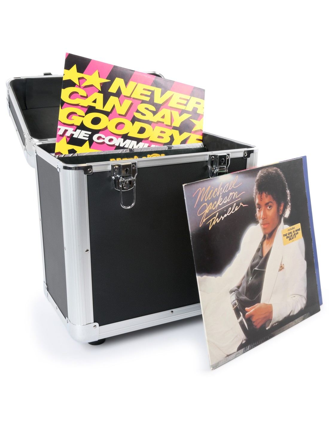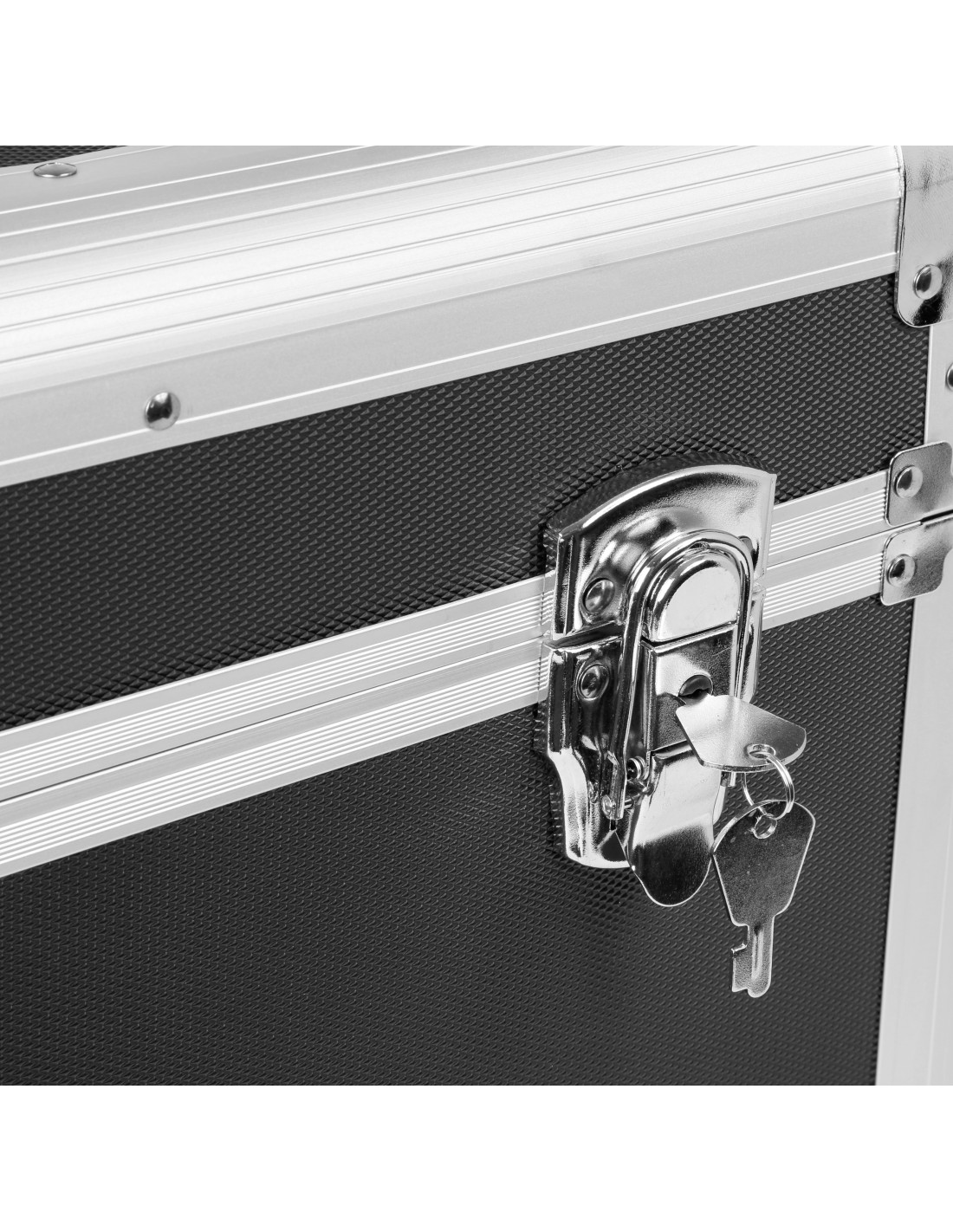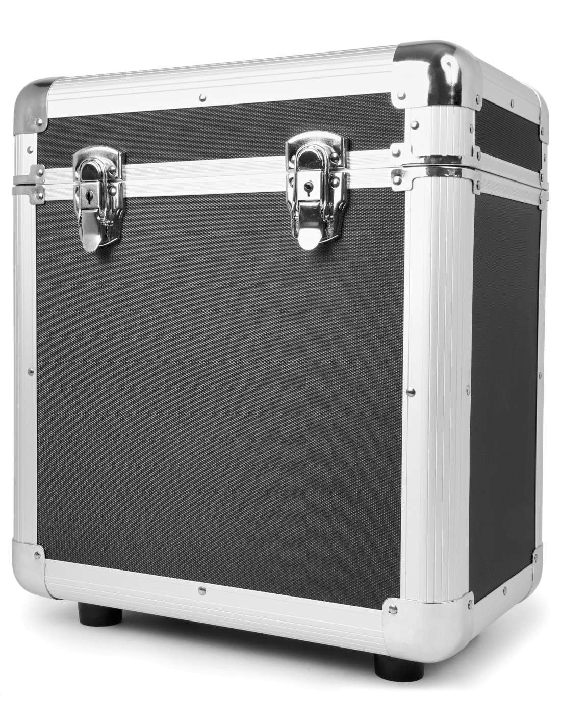 La RC80 permite el alojamiento de discos vinilo 12"/LPs en su corpartimento alcolchado interior. El exterior brillante incorpora tapa removible y cierres de mariposa. Su diseño con cuatro pies en la trasera y su asa suave, permite el apilamiento de varias unidades con seguridad.