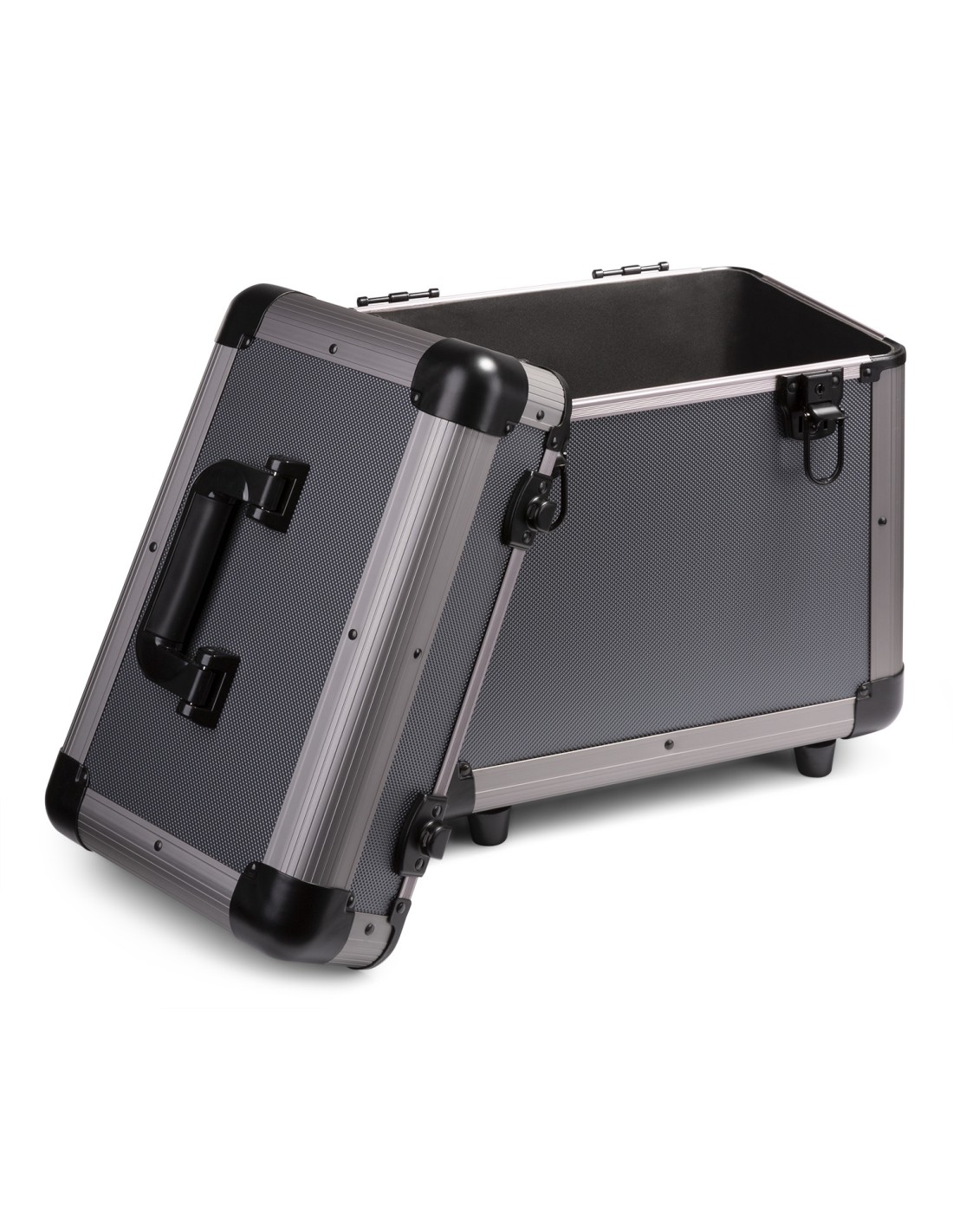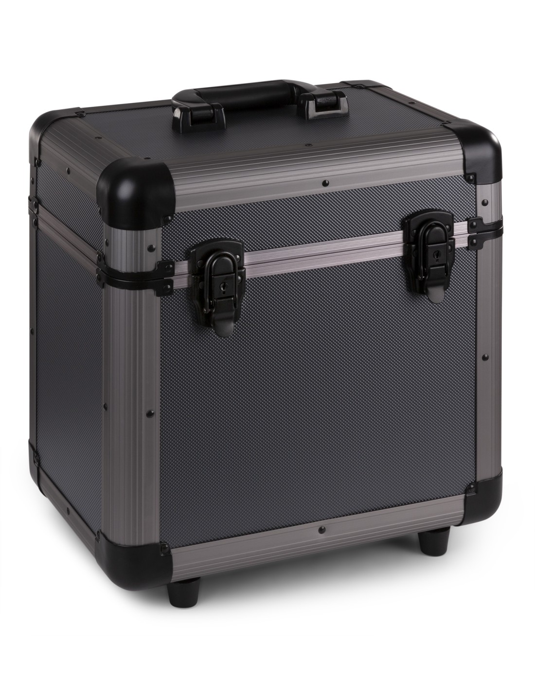 La RC80 permite el alojamiento de discos vinilo 12"/LPs en su corpartimento alcolchado interior. El exterior brillante incorpora tapa removible y cierres de mariposa. Su diseño con cuatro pies en la trasera y su asa suave, permite el apilamiento de varias unidades con seguridad.