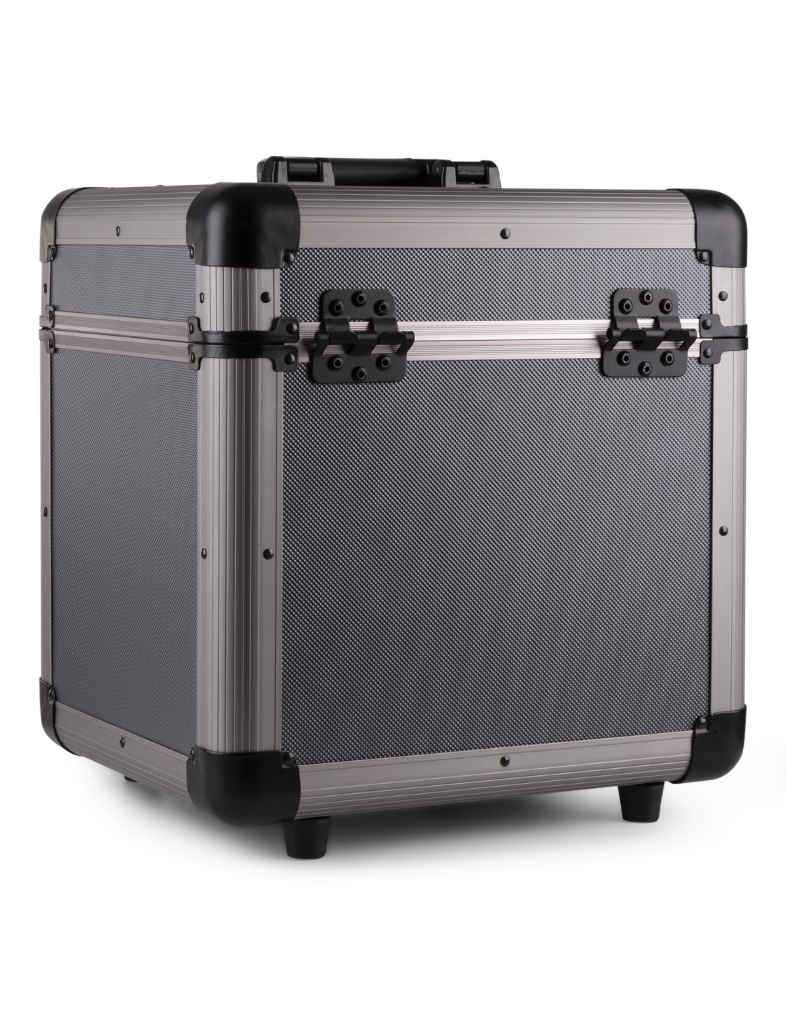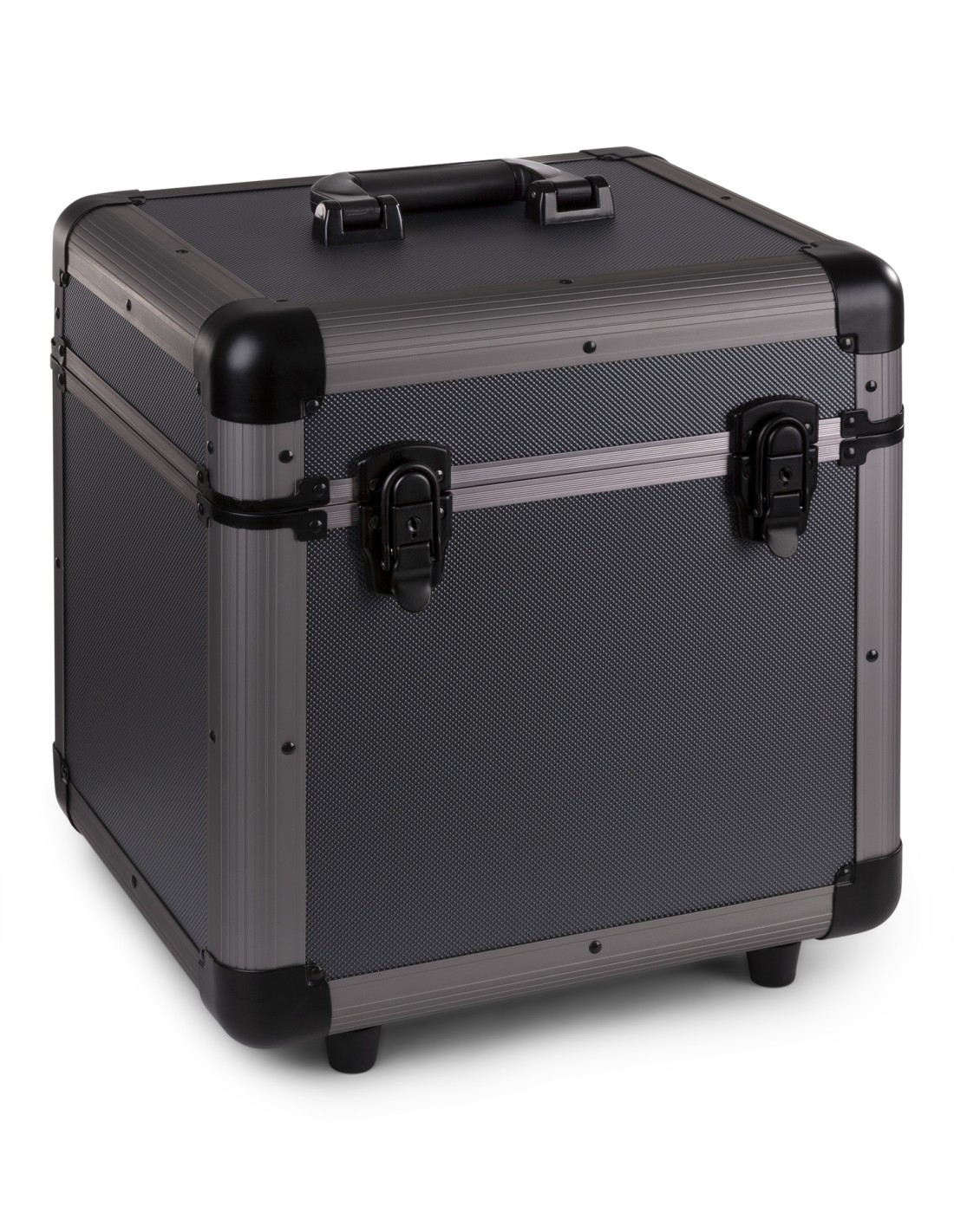 La RC100 permite el alojamiento de discos vinilo 12"/LPs en su corpartimento alcolchado interior. El exterior brillante incorpora tapa removible y cierres de mariposa. Su diseño con cuatro pies en la trasera y su asa suave, permite el apilamiento de varias unidades con seguridad.