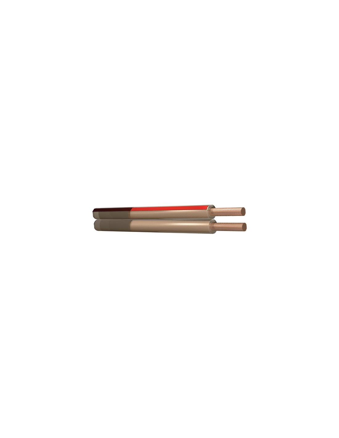 Alta calidad 2 conductores de cable del altavoz en la funda transparente. Indicadores rojos de polaridad.