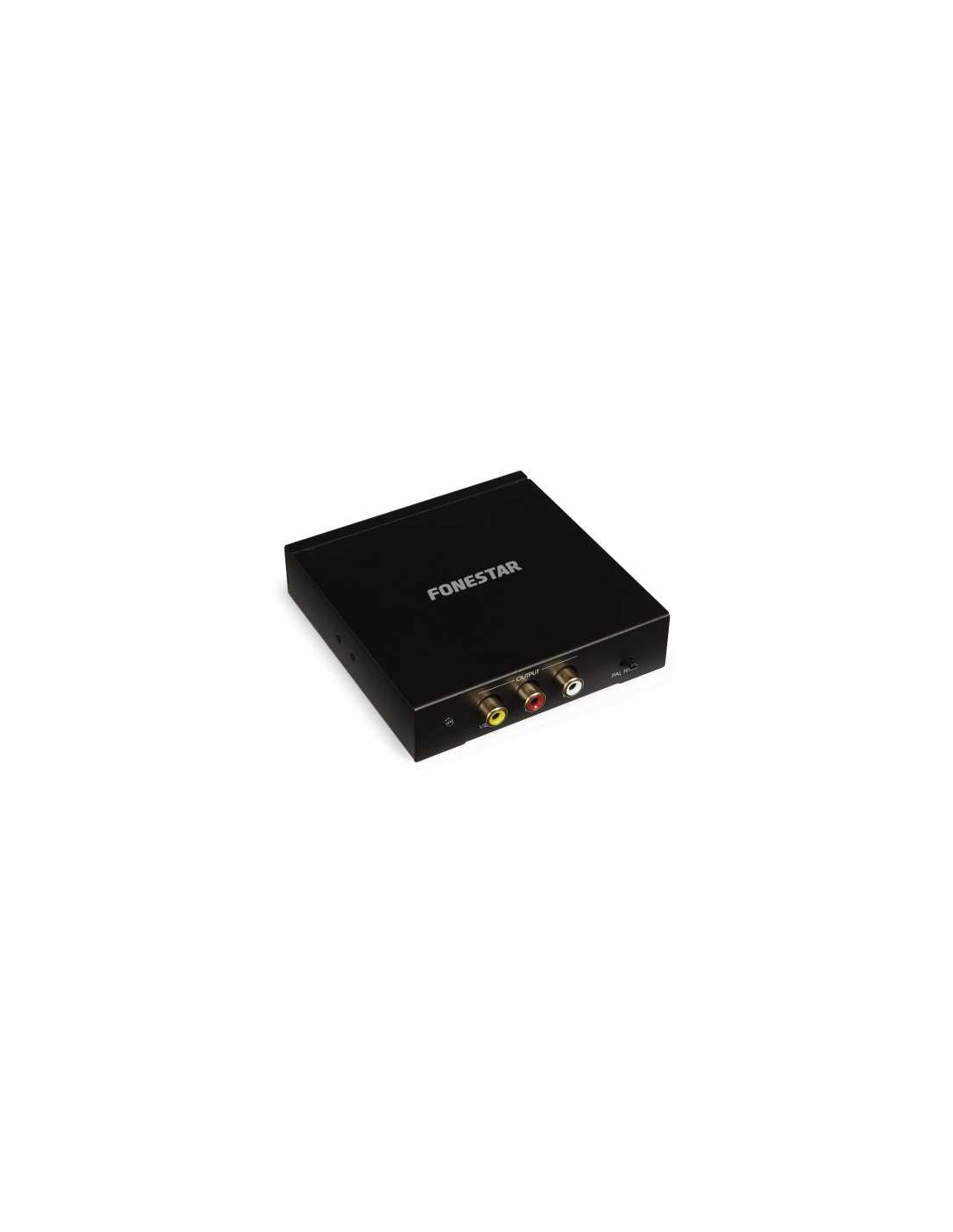 CARACTERÍSTICAS | Convertidor de HDMI a vídeo compuesto y audio estéreo. Permite la conexión de un reproductor a una pantalla o proyector con entrada de vídeo compuesto y audio estéreo. Resolución máxima 1080p. Selección del formato de salida de vídeo: NTSC o PAL. | |