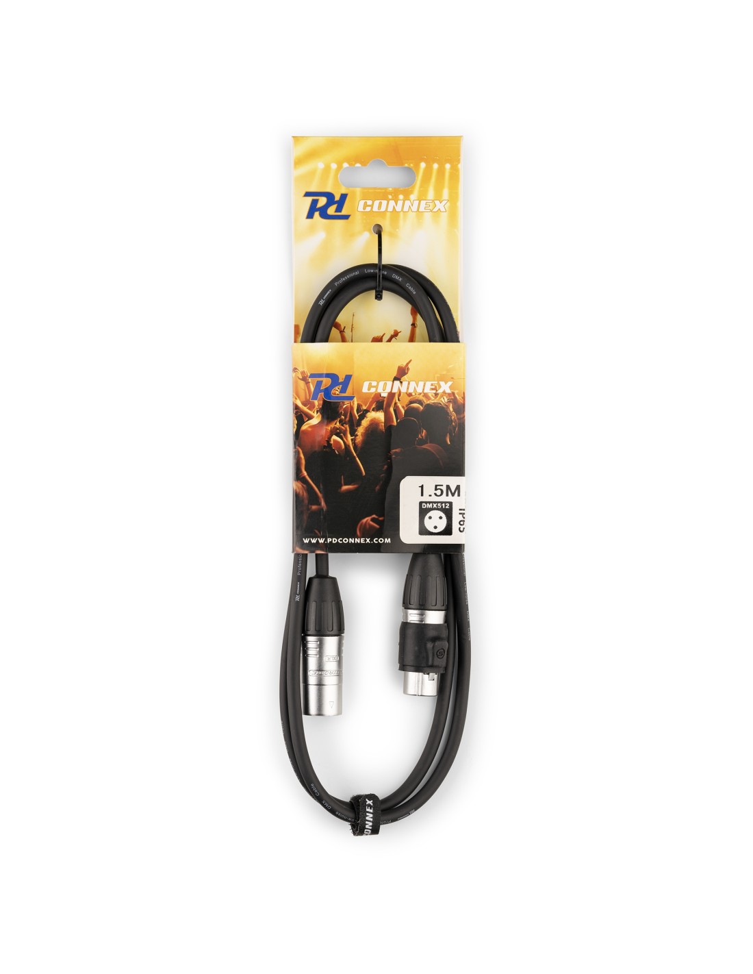 Cable de DMX PD Connex profesional HQ para intemperie(IP65). Este cable flexible incorpora conectores metalicos 3 pin de alta calidad y garantiza la transmision sin ruido de la señal.