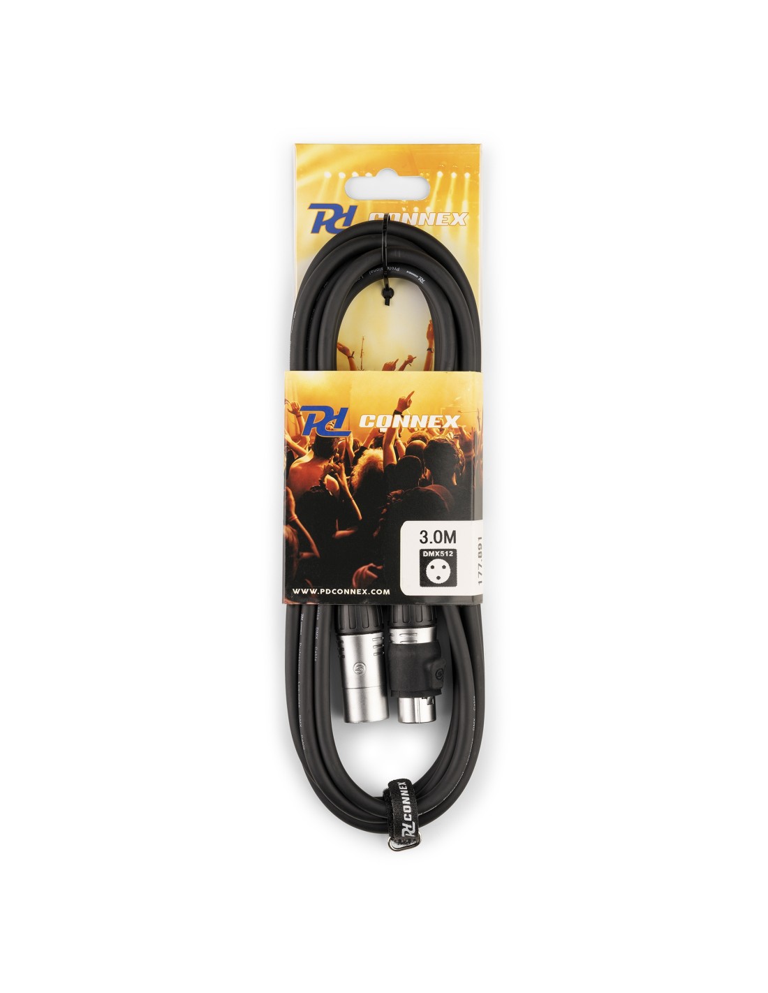 Cable de DMX PD Connex profesional HQ para intemperie(IP65). Este cable flexible incorpora conectores metalicos 5 pin de alta calidad y garantiza la transmision sin ruido de la señal.