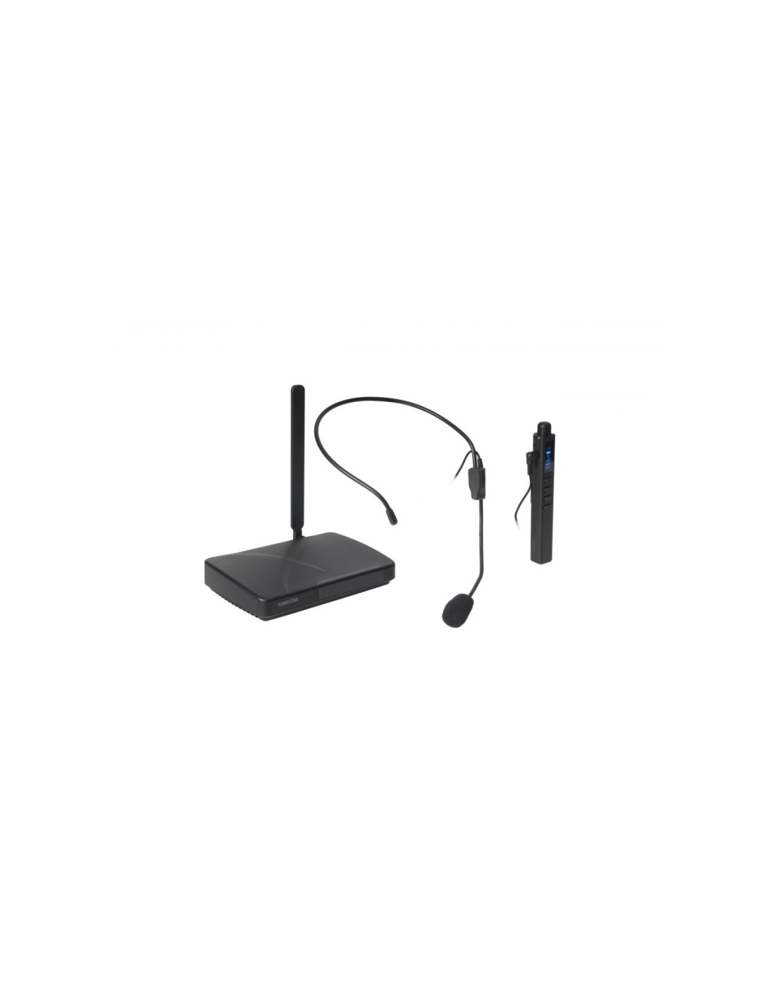 CARACTERÍSTICAS | Micrófono inalámbrico para educación y presentaciones. Micrófono inalámbrico de mano/cabeza con cápsula de condensador electret unidireccional, batería recargable Li-ion, puntero láser y función de presentador de diapositivas. Receptor con salida de audio y control de volumen. Tecnología UHF con modulación digital que proporciona un sonido libre de ruidos e interferencias. Sincronización automática de micrófono y receptor. Pueden funcionar 12 micrófonos y receptores a la vez. Distancia de transmisión de hasta 30 m. | |
