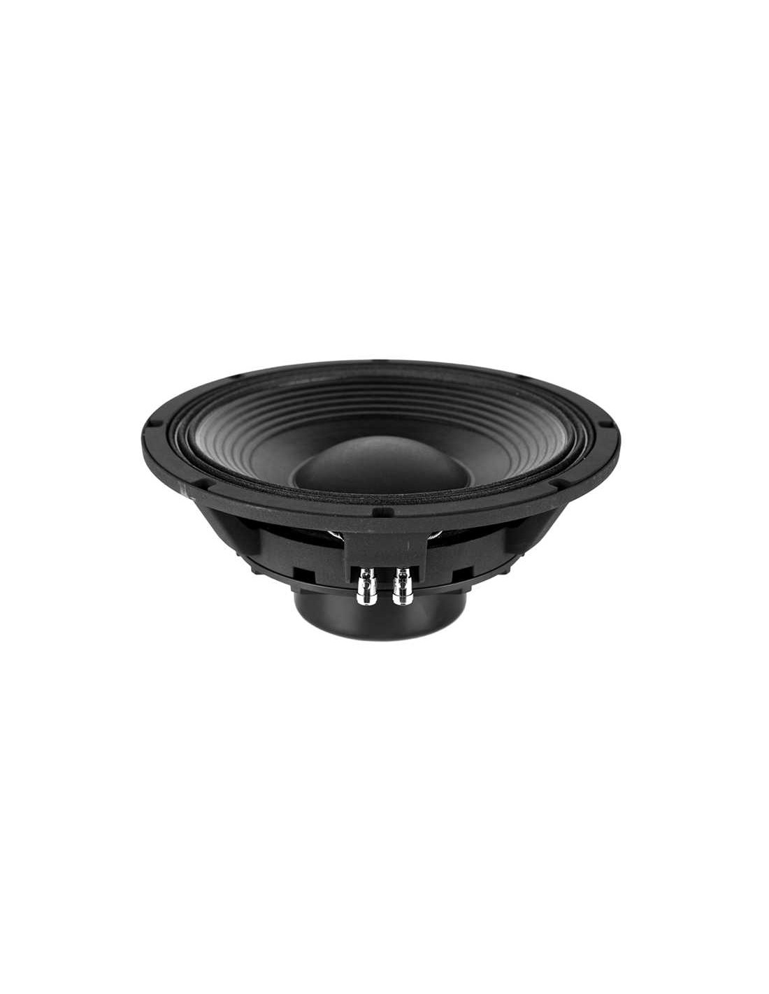 Impedancia nominal 8 Ohm Potencia admisible 900 W AES Diámetro nominal 300 mm 12 in Sensibilidad 96 dB 1 W @ 1 m @ 2π Impedancia mínima 6.5 ohm Rango de frecuencias 30-2500 Hz Potencia programa 1800 W Volumen de caja recomendado 20 / 60 l 0.7 / 2.24 ft³ Diámetro Bobina 100 mm 4 in Factor BL 25.3 N/A Masa móvil 0.100 kg Altura bobinado 21 mm Altura entrehierro 12 mm Desplazamiento máximo pp 52 mm