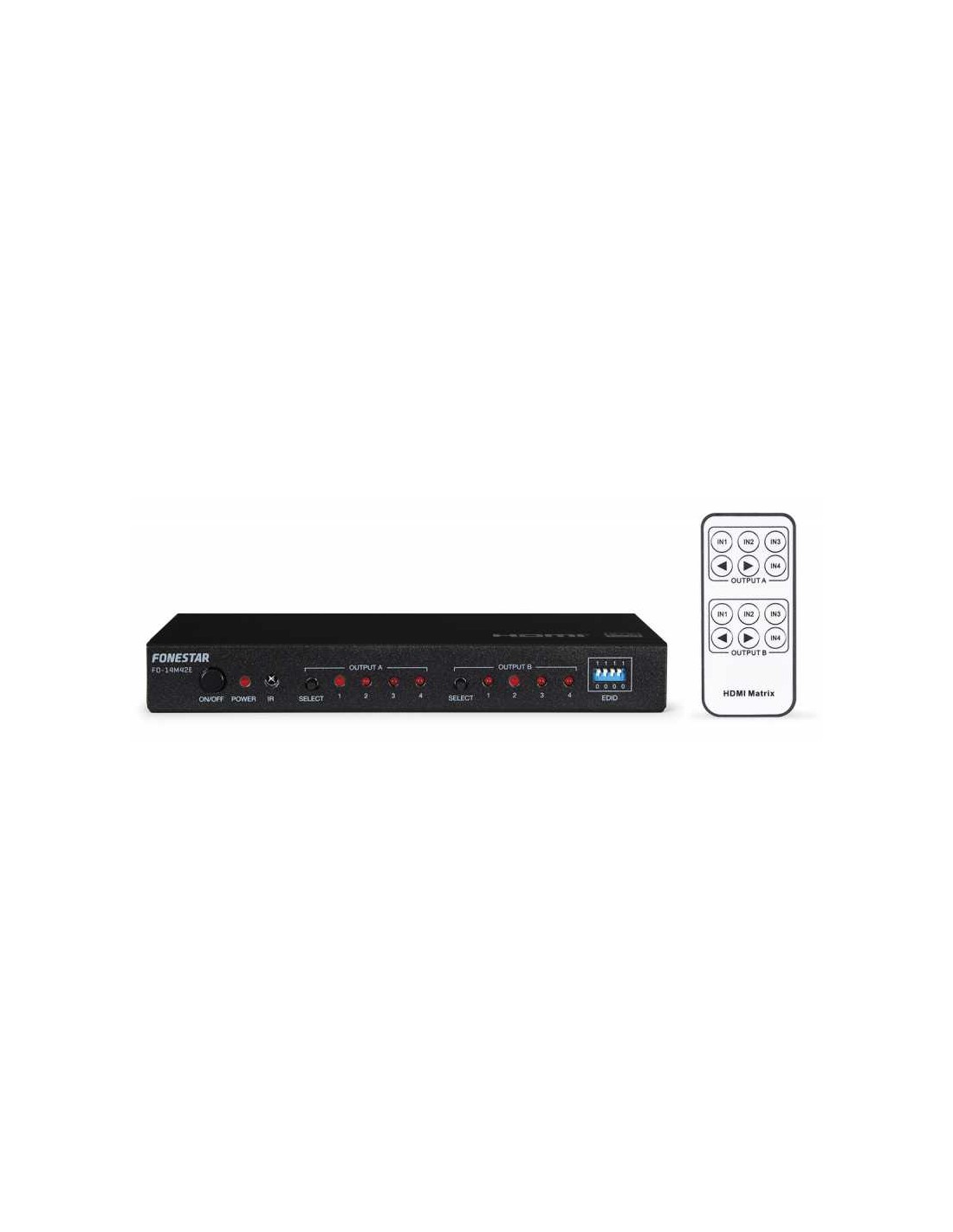 CARACTERÍSTICAS | Matriz HDMI 4 x 2. Resolución UHD 4K@30Hz. HDMI 1.4. HDCP 1.4. Ancho de banda 8'91 Gbps. Función EDID, selecciona automática o manualmente la resolución óptima para todas las TV. Mando a distancia. | |