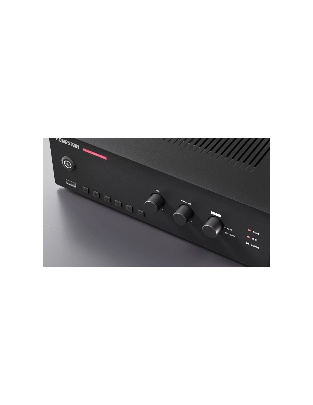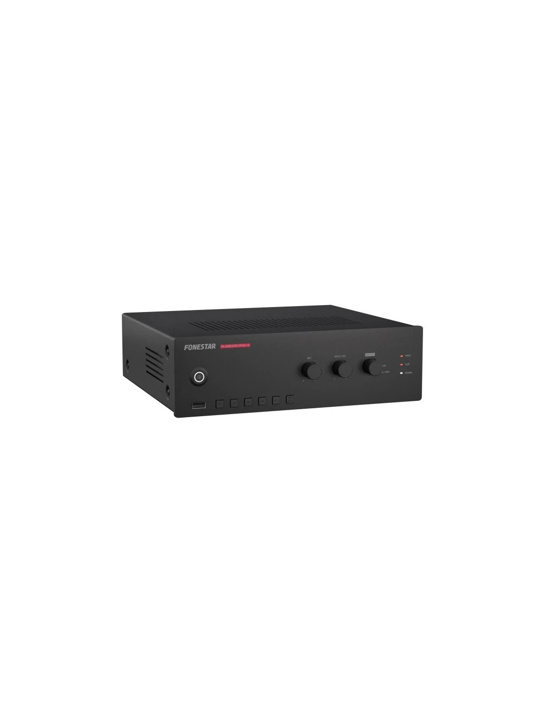 CARACTERÍSTICAS | Amplificador de megafonía. Reproductor USB/FM. Entrada de micrófono con control de mezcla, ganancia y nivel de prioridad. Controles de tono. Salidas de 100 V y 4 Ω. Montaje en vehículos y sobremesa. | |