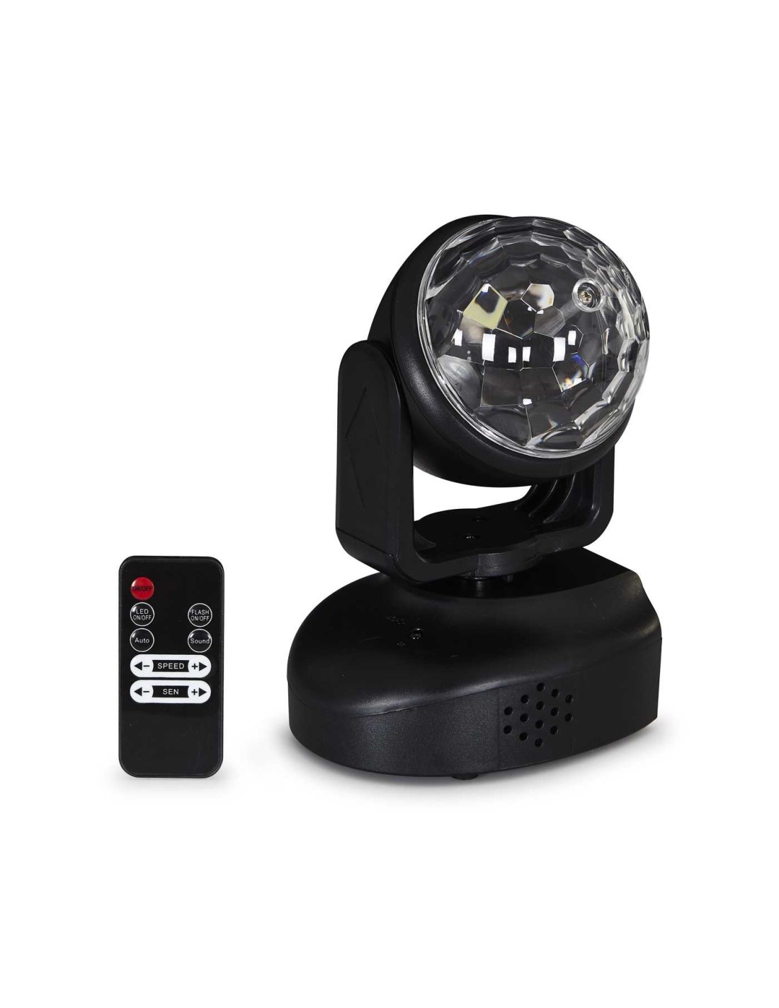 CARACTERÍSTICAS | Cabeza móvil LED RGB. Modo automático y activación por sonido. Micrófono incorporado. | |