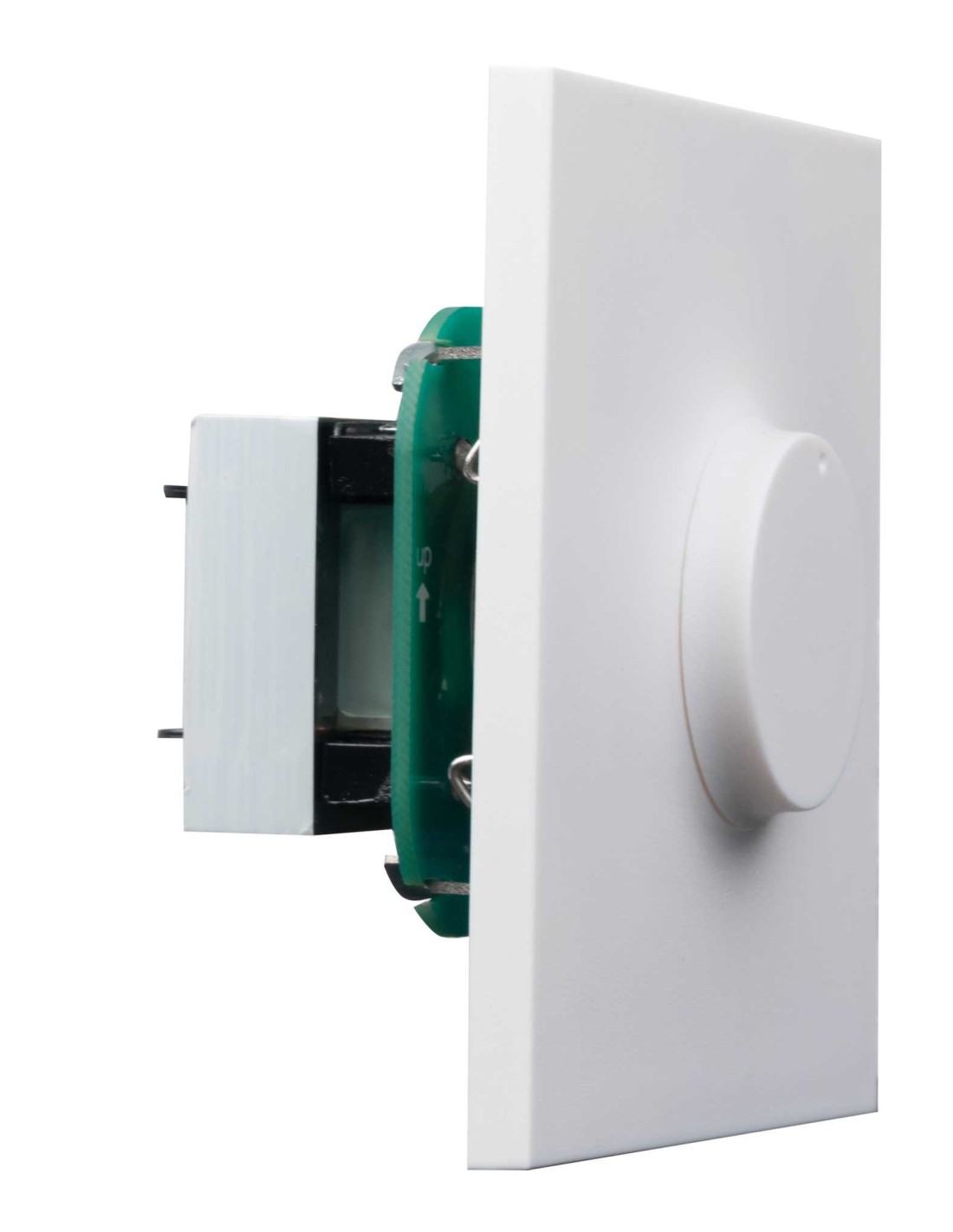 Atenuador con transformador de baja impedancia mono para montaje empotrado o en superficie. El transformador proporciona una mayor calidad de sonido y precisión en el control de volumen.