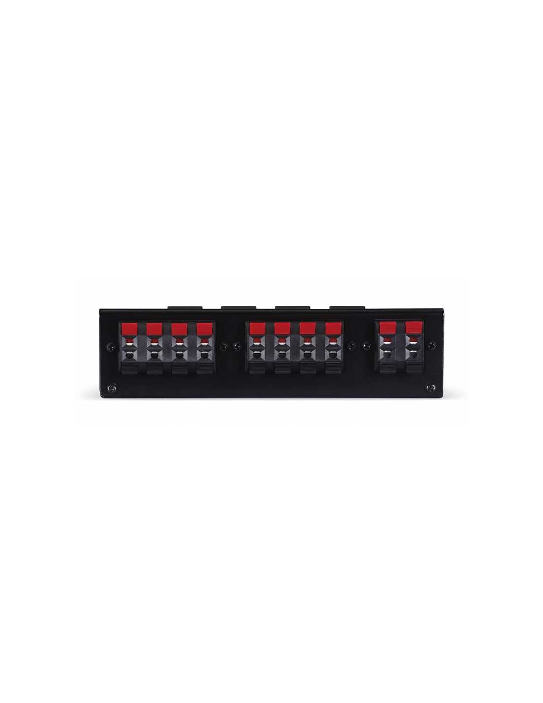 CARACTERÍSTICAS | Selector de 4 vías estéreo para cuatro parejas de altavoces. Convierte 1 salida del amplificador de audio en 4. Selección por conmutadores (on/off). Máxima potencia 2x200 W total, 50W por canal. Para amplificadores con salida 4 Ohm Conexión de altavoces de 8 Ω. Adapta la salida para cargar correctamente el amplificador (entre 16 y 4 Ohm). Terminales a presión de fácil instalación. | |
