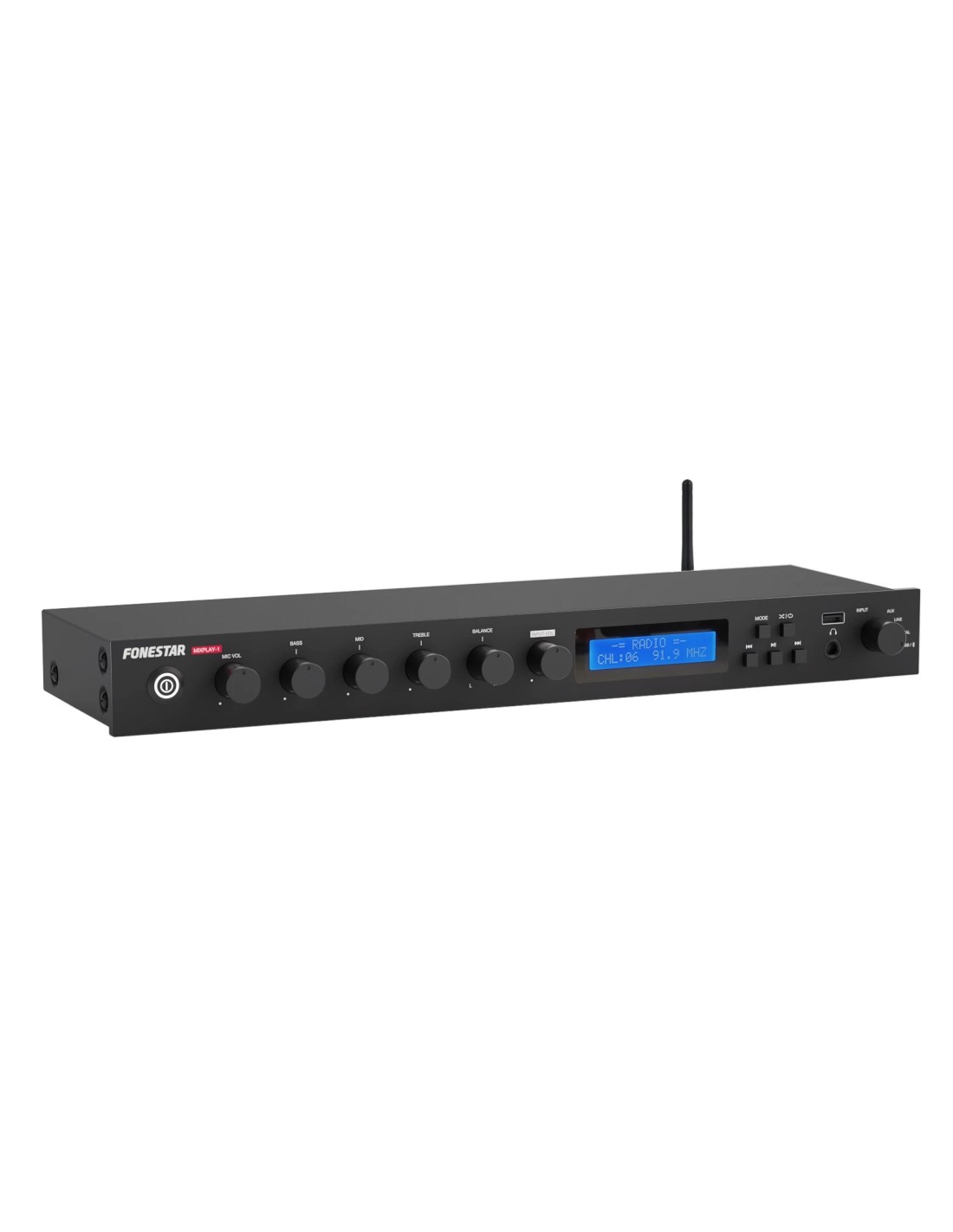 Volumen de las entradas AUX, LINE, DIGITAL y reproductor con control de balance, graves, medios y agudos
