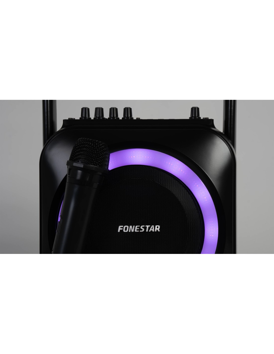 Altavoz portátil karaoke con micrófono inalámbrico.