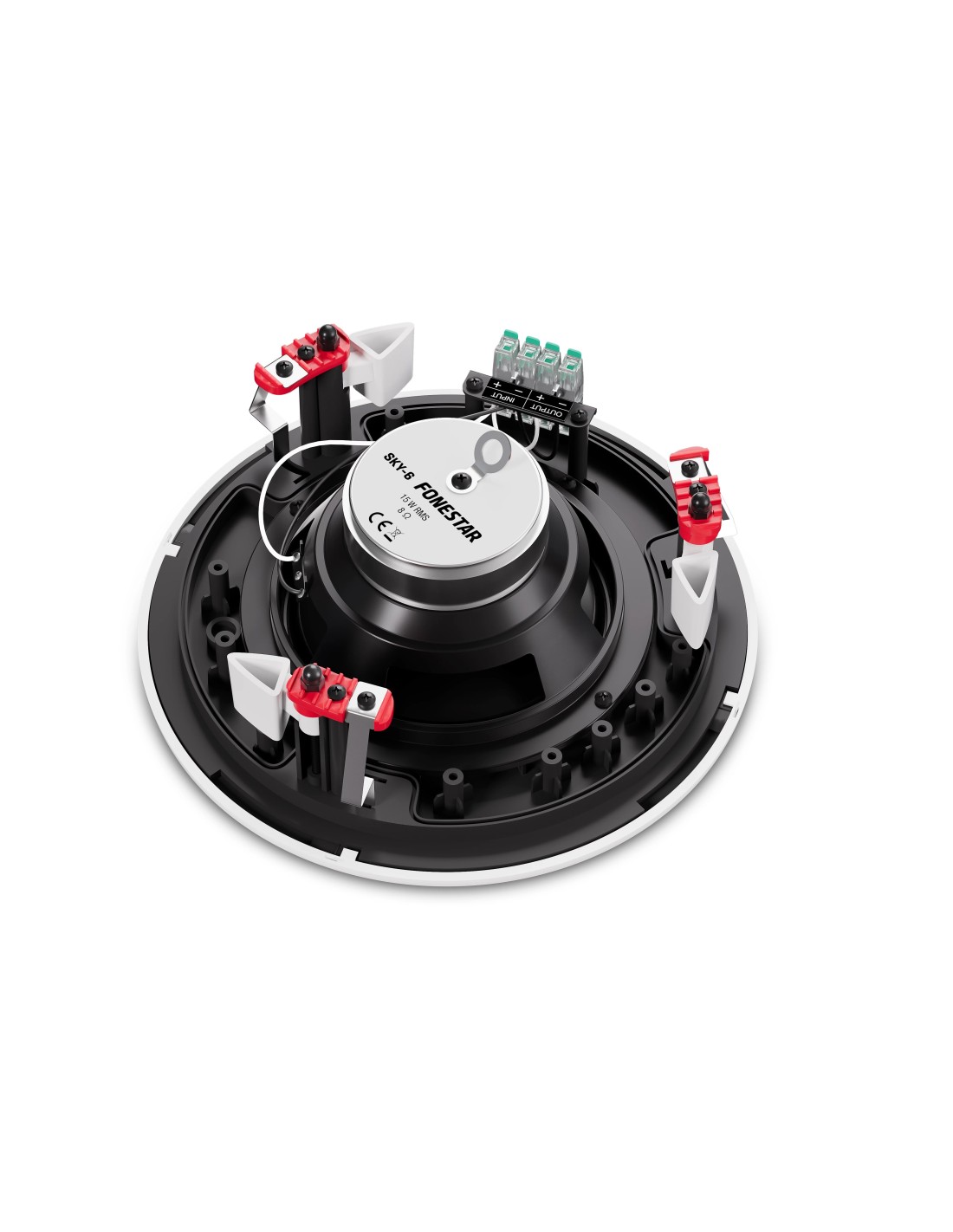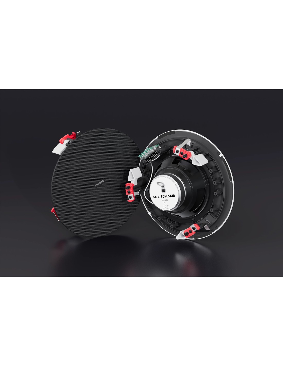 | CARACTERÍSTICAS: | Altavoz de techo de baja impedancia. Rejilla sin marco y perfil bajo, construida en aluminio resistente a la oxidación. Desmontable, bloqueable mediante giro. Se puede quitar el logo y pintar. Terminales de conexión rápida y gran conductividad. Sistema anticaída para ayuda en la instalación. Gancho para cable de seguridad. Soportes de sujeción al techo estables, mediante tornillo sin fin. Protección contra el polvo y el agua. |