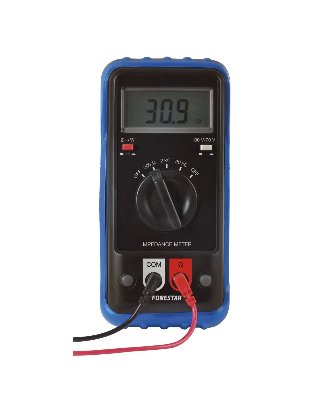 | CARACTERÍSTICAS: | Medidor de impedancia a 1 kHz para líneas de altavoces. Permite la comprobación de la impedancia de la línea de altavoces y la estimación de la potencia necesaria en una instalación de línea 100 ó 70 V para la adecuada elección del amplificador. 3 escalas de medida: 200 Ω, 2 kΩ y 20 kΩ. Pantalla LCD de fácil lectura. Medida de potencia para altavoces de línea 70 y 100 V. Fácil manejo. |