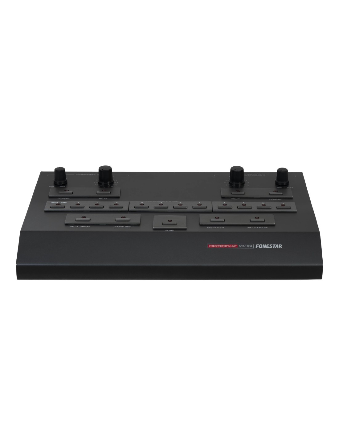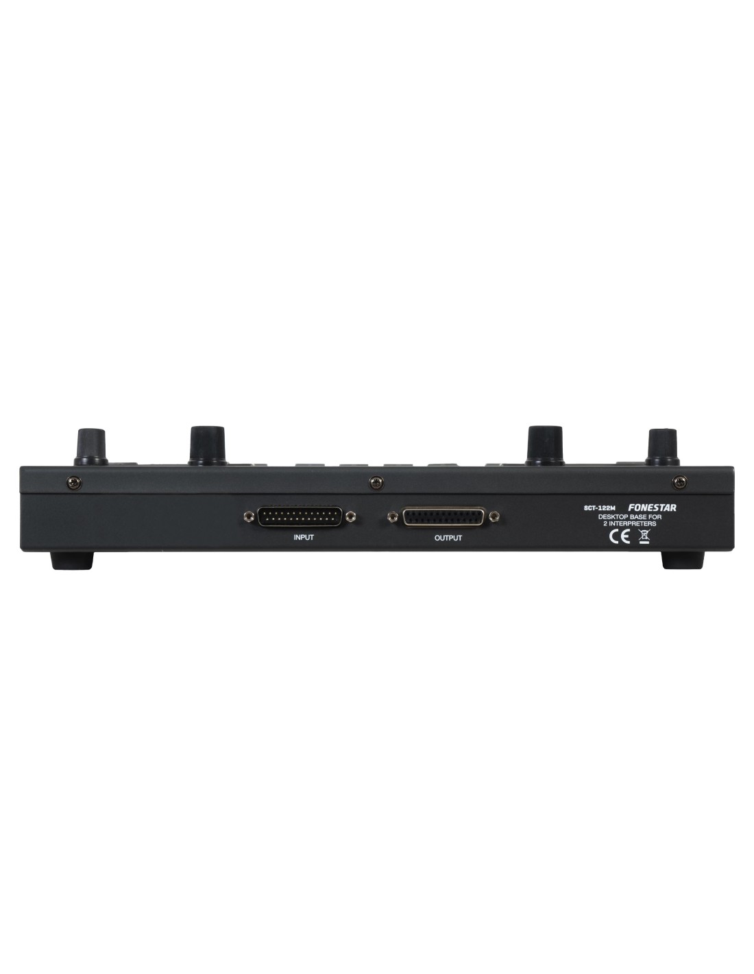 Base de sobremesa para 2 micrófonos de traducción simultánea en el mismo canal de salida.