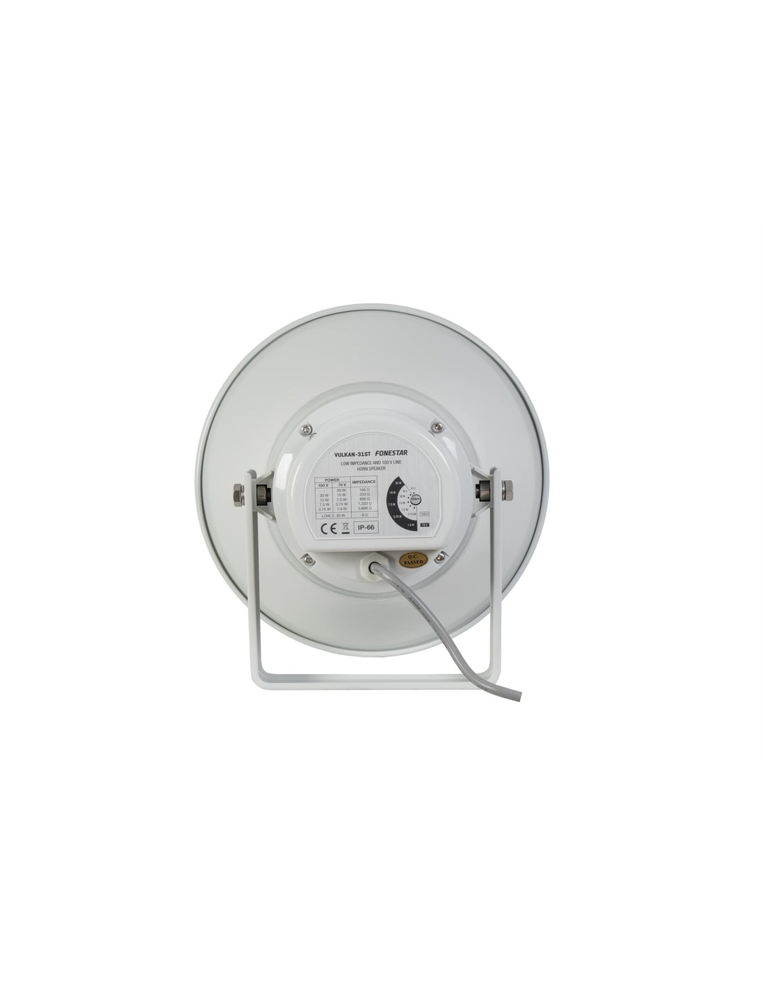 | IMPEDANCIA: | 30 W RMS@100 V (333 Ω) 15 W RMS@100 V (666 Ω) 7'5 W RMS@100 V (1.333 Ω) 3'75 W RMS@100 V (2.666 Ω) Baja Z: 8 Ω |
