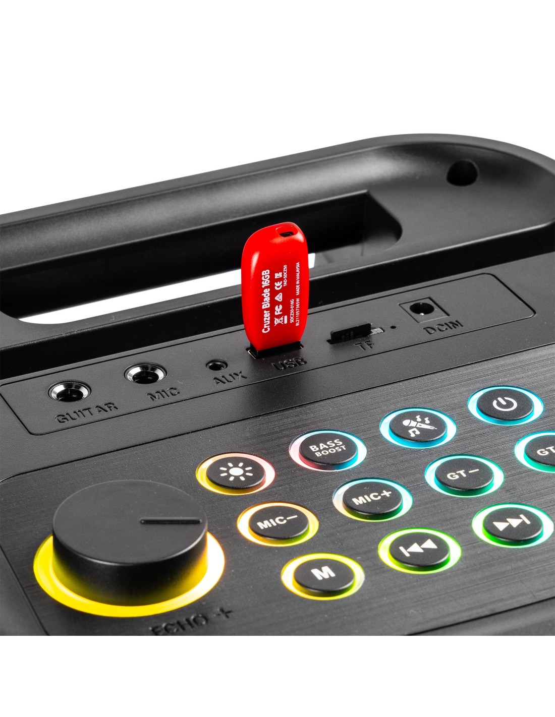 Si desea una durabilidad resistente y una conectividad infinita, la serie Core Party Speaker hará que triunfe la fiesta, esté donde esté. Con un espectáculo de luces sincronizadas en el frente y un panel de control claro en la parte superior, un sonido estéreo fantástico y una batería incorporada, ¡este es un altavoz que se ve genial y suena aún mejor! Core Party Speaker, que se caracteriza por la avanzada tecnología inalámbrica BT, le brindará música de alta calidad y garantiza una señal nítida. ¡Emparejar su teléfono u otro dispositivo habilitado para BT es súper fácil! Entonces, si busca alta potencia, gran sonido y un espectáculo de luces espectacular; Core Party Speaker ¡El iniciador de la fiesta!