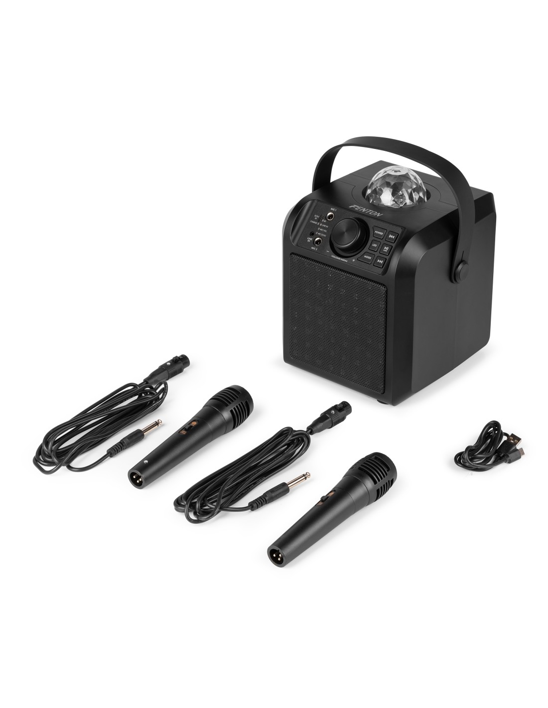 Mejora tu fiesta con el altavoz de karaoke Fenton KAR55. Este altavoz compacto y elegante tiene un sonido potente, perfecto para cualquier fiesta. Con la conectividad BT, puedes transmitir fácilmente tus canciones favoritas desde cualquier dispositivo. Las luces LED incorporadas en el frente y Jelly Ball en la parte superior agregan una atmósfera espectacular, mientras que los micrófonos incluidos te convierten en el centro de atención y muestran tus talentos vocales. Ligero y portátil, este altavoz es ideal para sesiones de karaoke divertidas e inolvidables en cualquier lugar. ¡Libera la estrella que llevas dentro con el altavoz de karaoke Fenton KAR55!