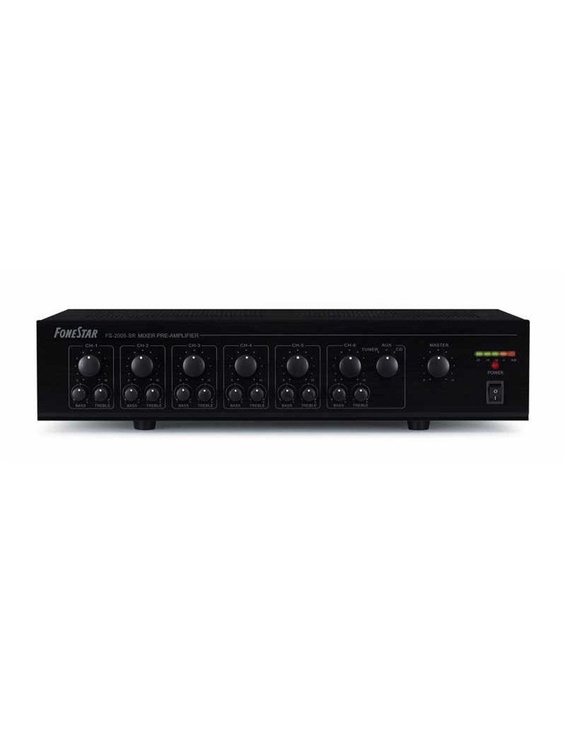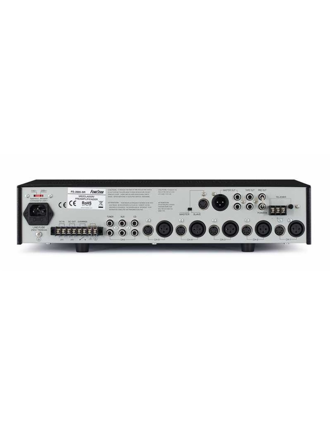 CARACTERÍSTICAS | Mezclador/preamplificador.6 canales, 5 de micros/líneas y 1 de línea auxiliar con 3 entradas seleccionables.Alimentación phantom.Prioridad de avisos.Tonos musicales de aviso.Supresor de realimentación.Selector de 3 entradas auxiliares. | |