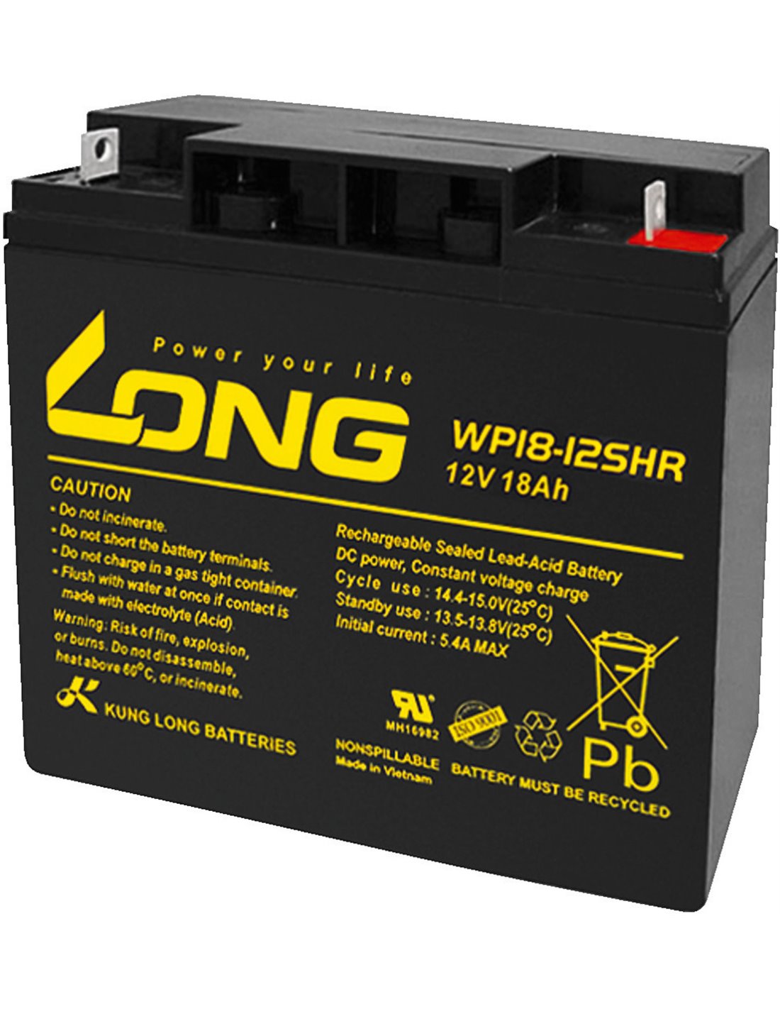 voltaje nominal:12 V:1:0,capacidad:18 Ah:2:0,tecnolog a:Plomo/ácido:3:0,cantidad:1:4:0,corriente de carga:máx. 5,4 A:5:0,dimensiones:181 x 167 x 76 mm:6:0,peso:5,6 kg:7:0,conexiones:conexión roscada de 5 mm (F3):8:0,otras caracter sticas:sin mantenimiento:9:0,peso neto:5,76 kg:10:0