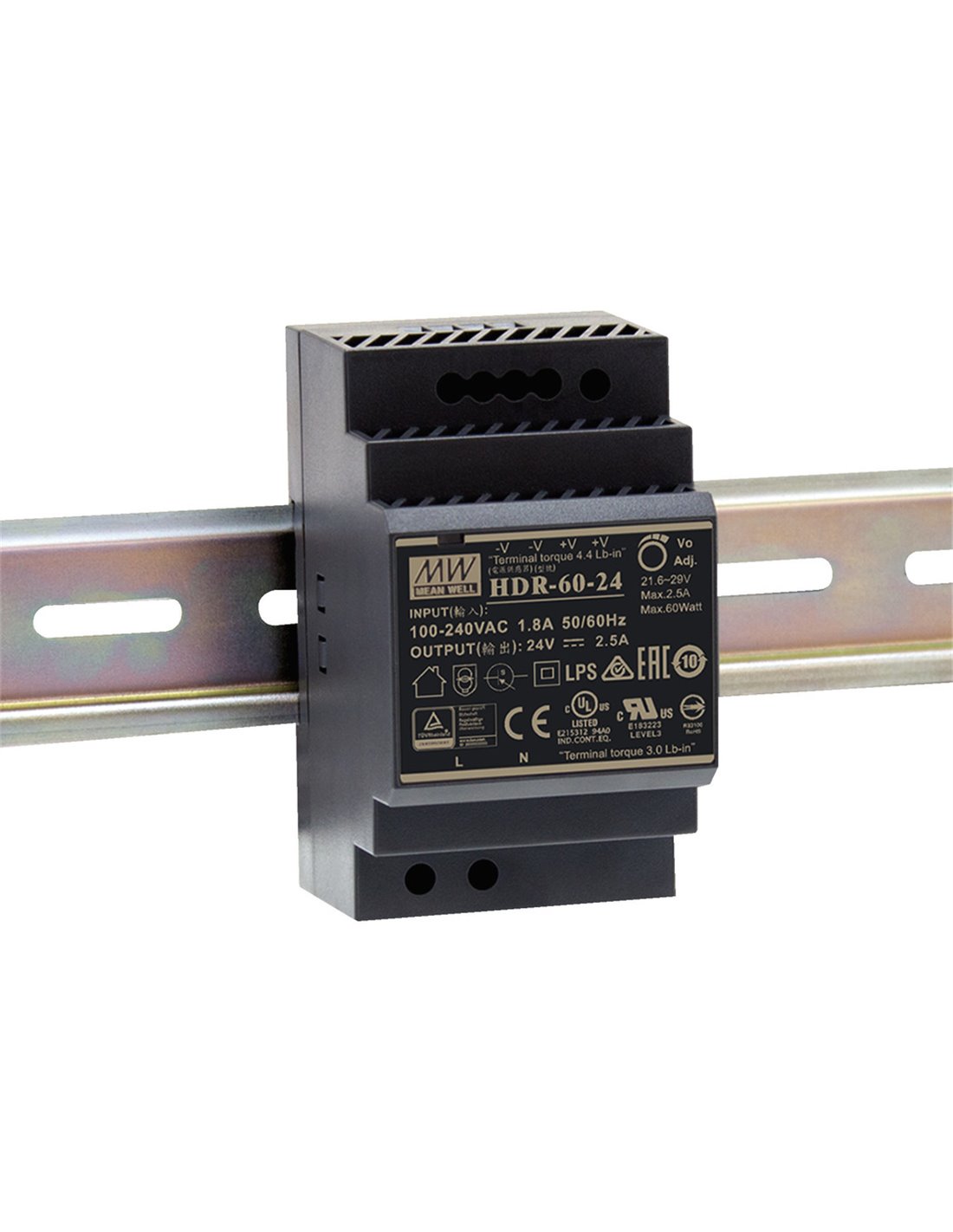 categor a:Fuente de alimentación conmutada:1:0,voltaje de entrada:˜ 85-265 V/47-63 Hz:2:0,voltaje de salida:DC 24 V:3:0,corriente de carga de salida:2,5 A:4:0,conexiones:Conexiones con abrazaderas de tornillo:5:0,protecci n contra cortocircuitos:sí:6:0,protecci n contra sobrecarga:sí:7:0,protecci n contra sobrecalentamiento:sí:8:0,temp ambiente admis :-30-+70 °C:9:0,dimensiones:52,5 x 90 x 58,4 mm:10:0,peso:190 g:11:0,peso neto:0,191 kg:12:0