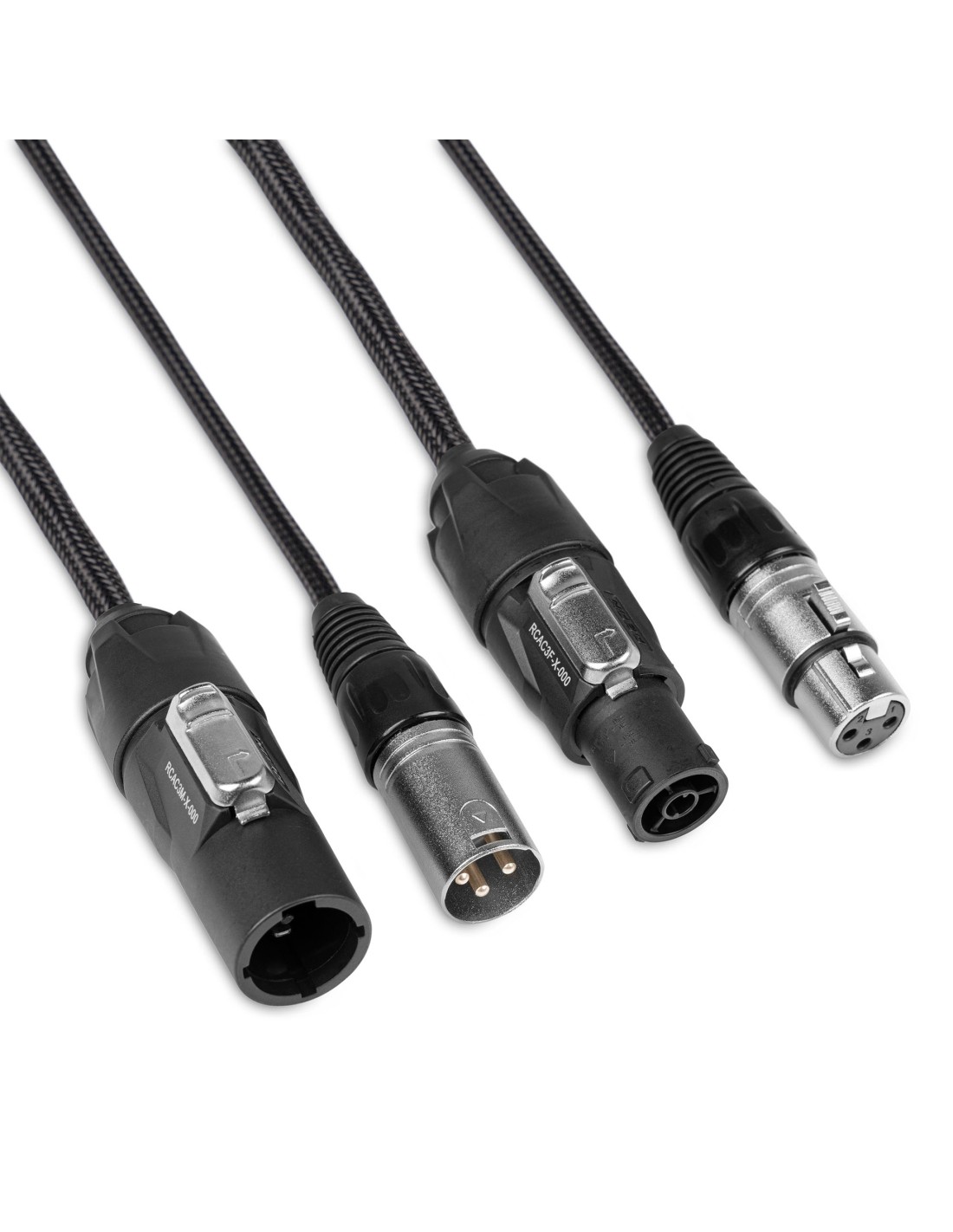 Cable de alimentacion y señal en una sola conexion. Con conectores de alimentacion Powerconnector TR y conector XLR de señal DMX no se necesita ningun otro cable para conectar profesionalmente sus efectos LED, cabezas moviles y baños de color de forma facil y limpia.