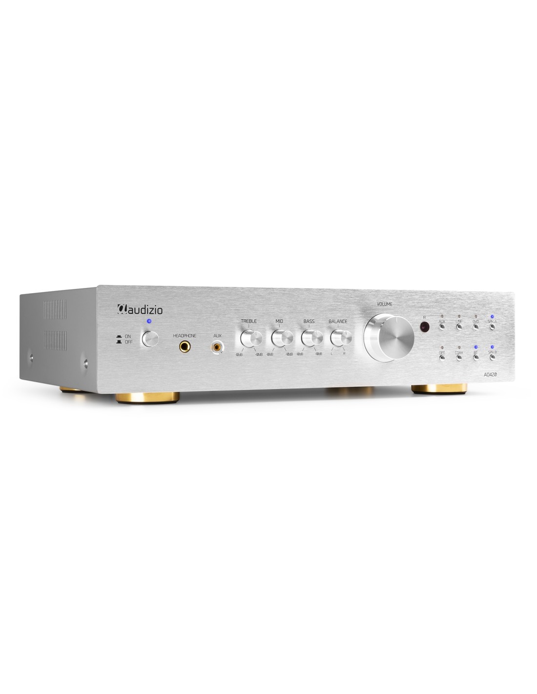 La serie Audizio AD es una serie de amplificadores HiFi versátiles con gran funcionalidad y excelente sonido. Incluso a niveles de volumen más altos, estos amplificadores proporcionan una alta presión de sonido. El diseño elegante del amplificador y las amplias opciones de conectividad lo hacen perfecto para uso doméstico. La entrada AUX frontal permite la conexión a dispositivos de audio portátiles como teléfonos inteligentes, reproductores de MP3 y CD. En la parte posterior encontrará tres entradas de línea RCA para fuentes de música externas como reproductores de MP3/CD y otros dispositivos. Los amplificadores AD también están equipados con tecnología BT inalámbrica avanzada y funcionan con todos los dispositivos más recientes, incluidos teléfonos inteligentes, tabletas y portátiles. Disfrute de una calidad de sonido excepcional que combina alta potencia con calidad musical.