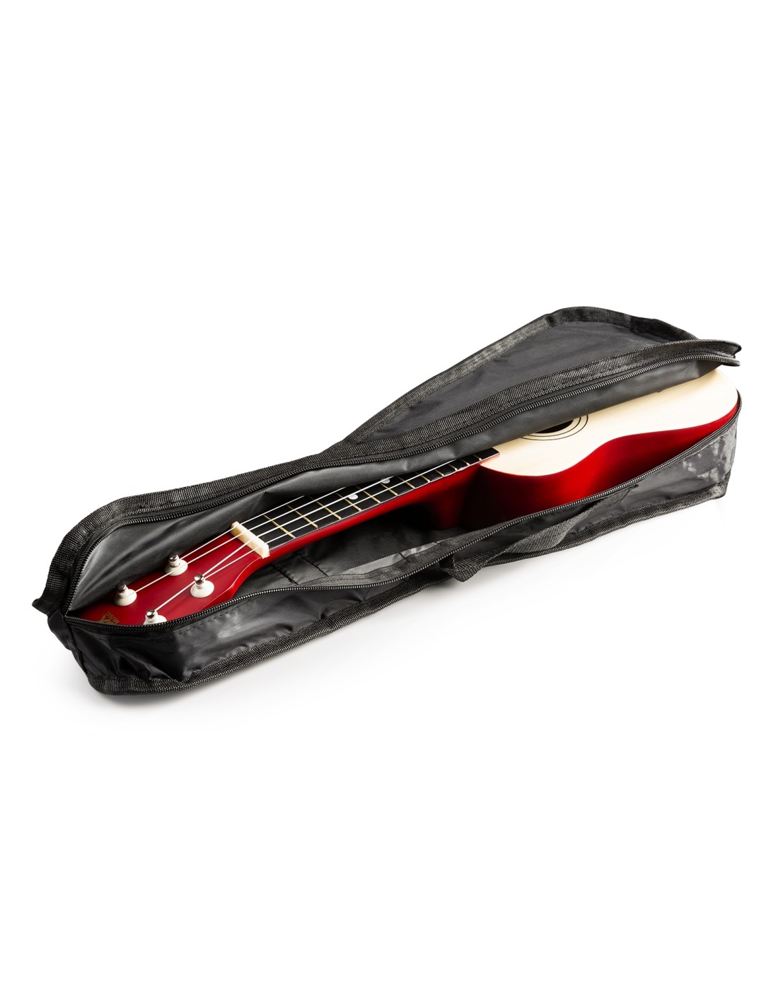 Incluye afinador digital, 2 púas, cuerdas de recambio y bolsa de transporte