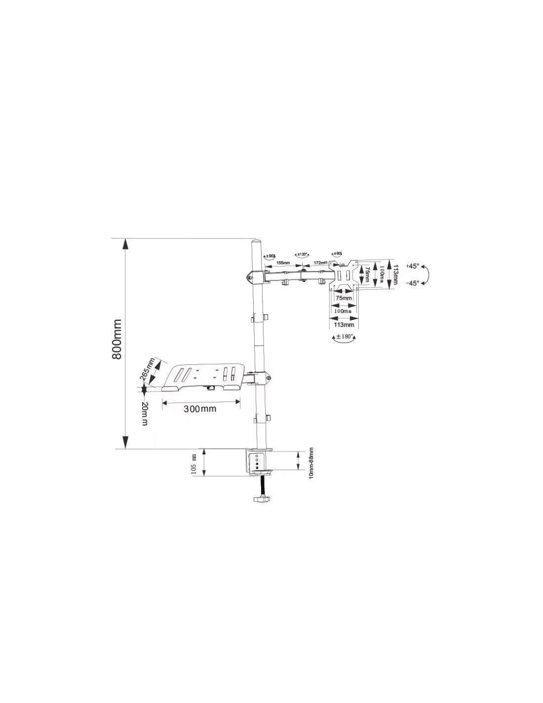 La serie CMA son brazos para monitor con doble codo para permitir el ajuste exacto de la posición de los monitores. Fabricado en acero de alta resistencia, es resistente a ralladas y soporta monitores de 8kg y 32". El panel VESA es desconectable para poder atornillar fácilmente los monitores al panel y deslizarlos en el alojamiento. El conjunto puede rotar y posicionarse en cualquier dirección, permitiendo la visión angulada. También puede ajustar en vertical el monitor hasta la posición deseada. Un clip de cables permite organizar y proteger las conexiones. VESA compatible con 75x 75 y 100x 100.