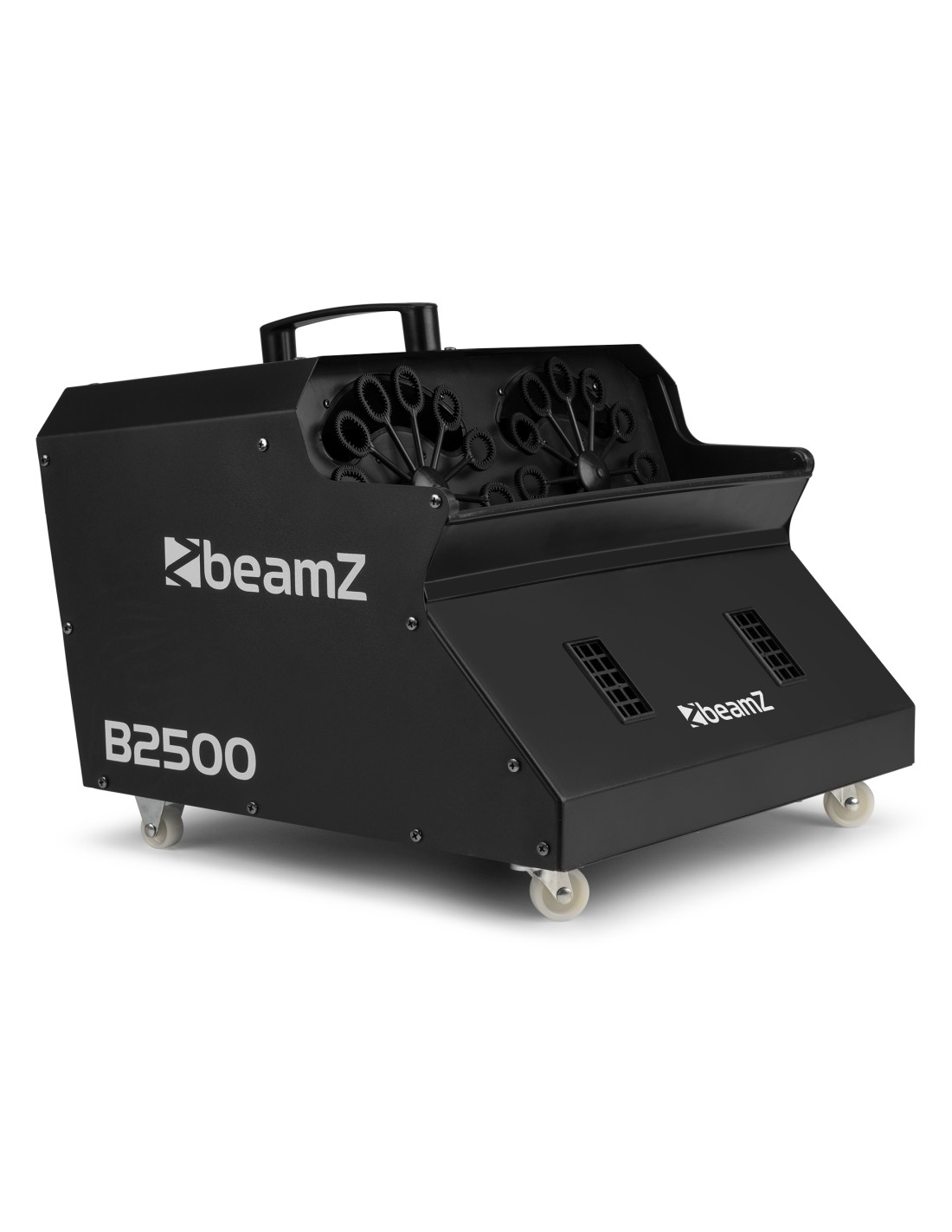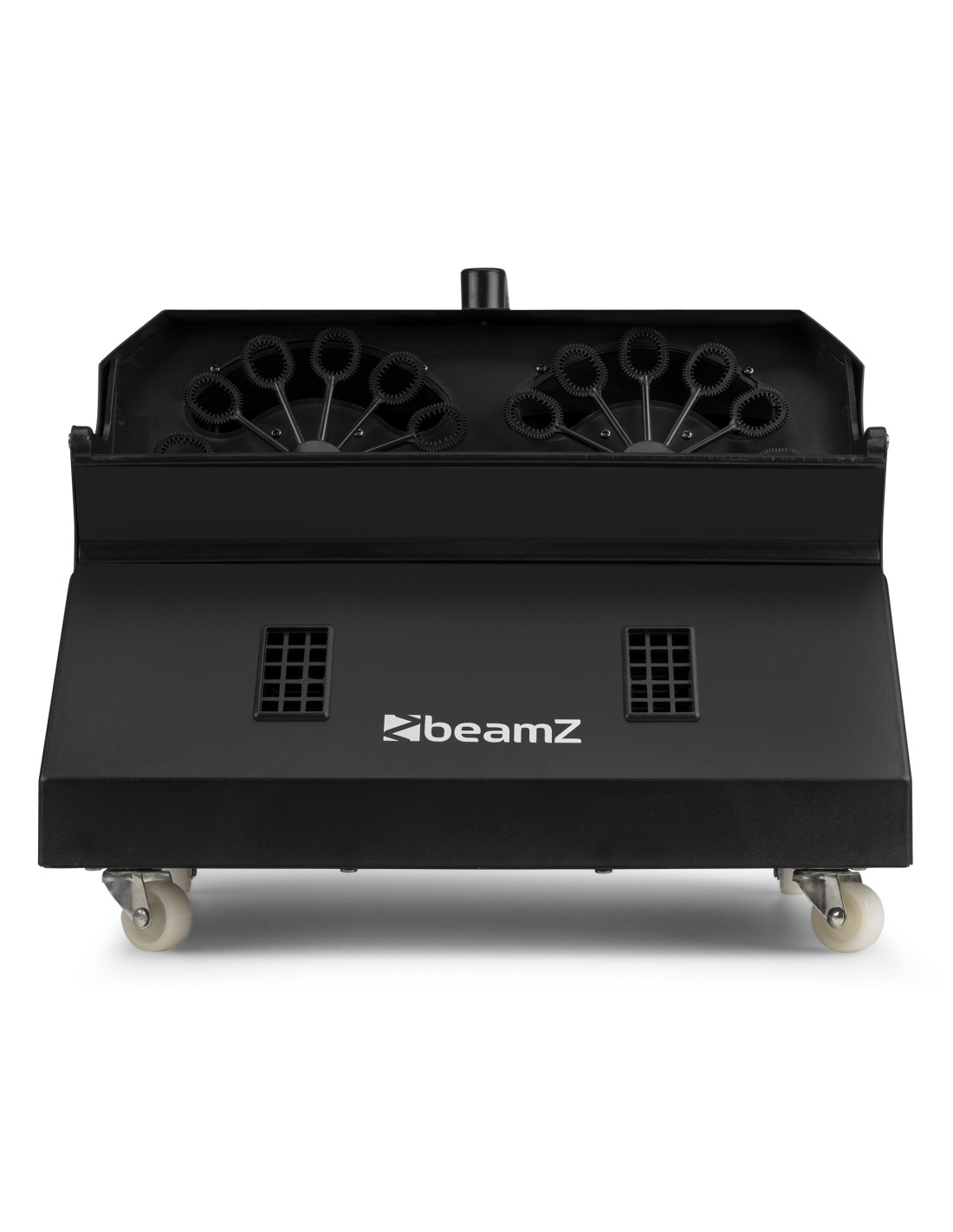 Maquina de burbujas doble con doble rueda para mayor produccion de burbujas y mejorar la dispersion del efecto. La maquina crea millones de burbujas de colores.