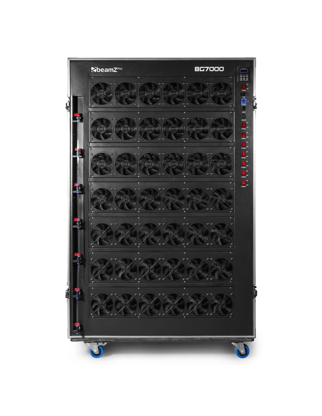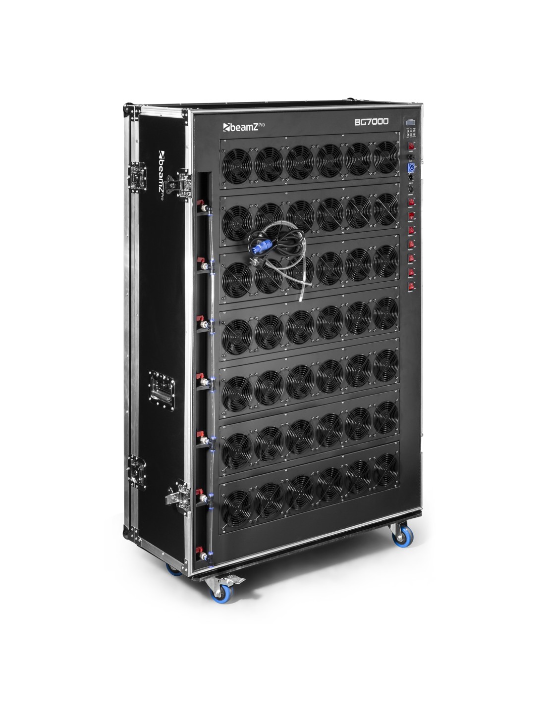 La maquina de Burbujas Pro BG7000 es una revolucionaria maquina profesional y robusta que es capaz de genera enormes cantidades de burbujas en el aire. Esta equipada con 42 potentes ventiladores con 7 niveles que crean una increible pared de burbujas en pocos segundos. Para uso en shows al aire libre, conciertos, exhibiciones, escenario y todo tipo de eventos en interior y exterior.