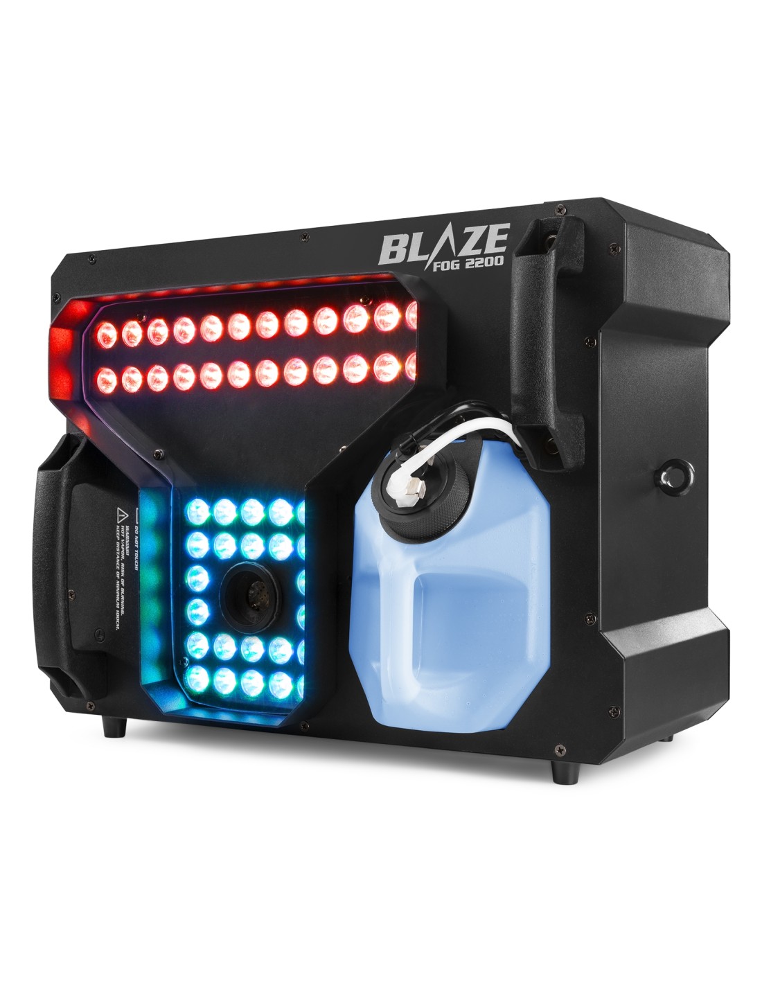 La serie Blaze es una gama de máquinas de humo profesionales que ponen humo ahí donde se necesita! Estas máquinas de humo duraderas están equipadas con LEDs de alta potencia RGBA y además de usarse de forma estándar en horizontal, también pueden usarse en posición vertical gracias a su sistema de boquilla de fluido. Las máquinas Blaze pueden operar vía el panel de control integrado con display LCD o con el mando por cable suministrado e incluyen un elemento calefactor de alta calidad y tanque interno para el líquido. Gracias a la tecnología de paro instantáneo, se elimina el líquido de la boquilla reduciendo las salpicaduras y dando una salida de humo precisa. La nueva boquilla hace posible reducir en un 50% la posibilidad de quemar comparado con las maquinas estándar.