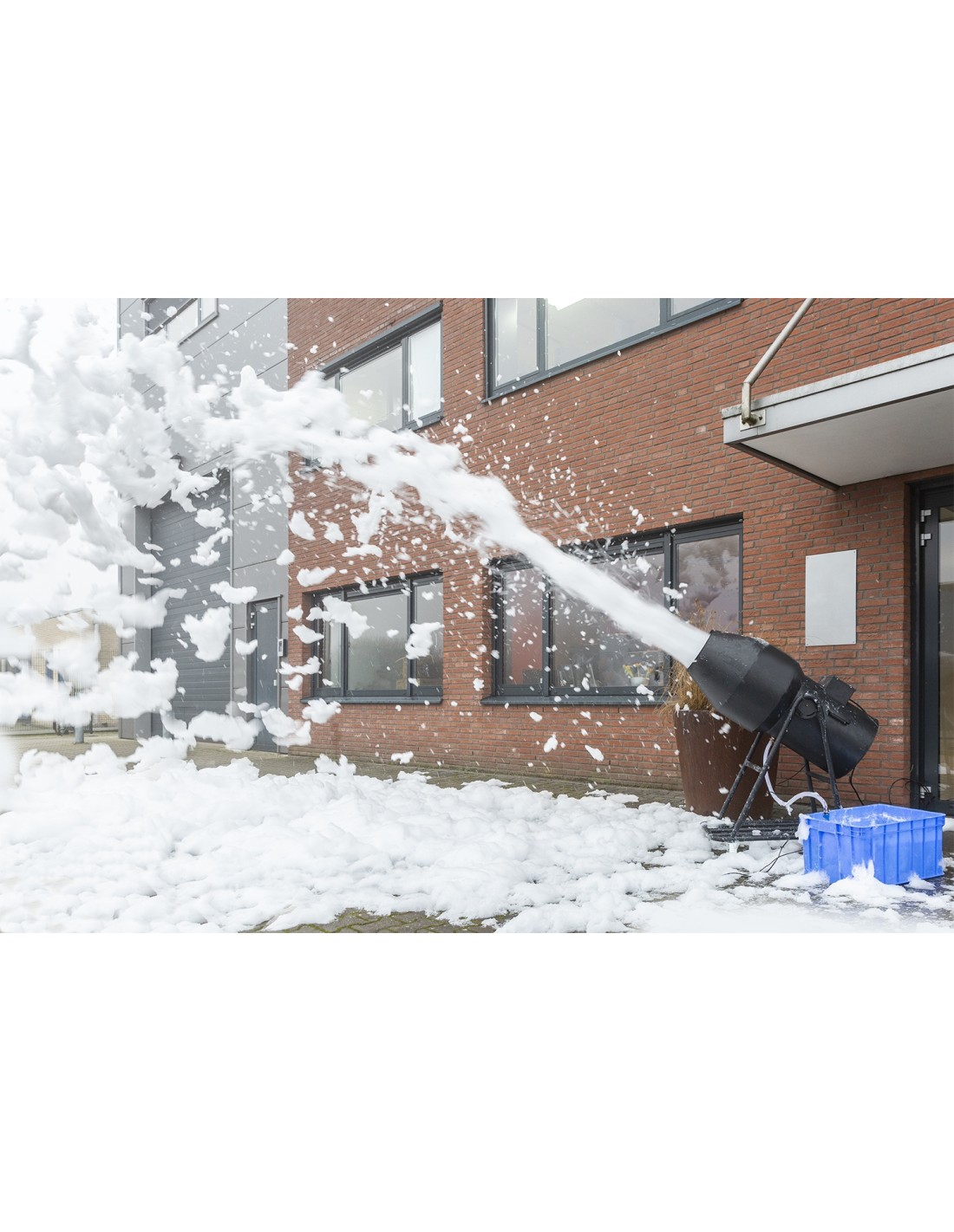 El JFC1000 es una poderosa maquina de espuma que produce gran cantidad ide espuma de calidad. La espuma se produce en el cabezal y es soplada de forma continua. Esta maquina puede lanzar un chorro continuo de espuma blanca biodegradable hasta una distancia de 10 metros. Incluye robusto flightcase.