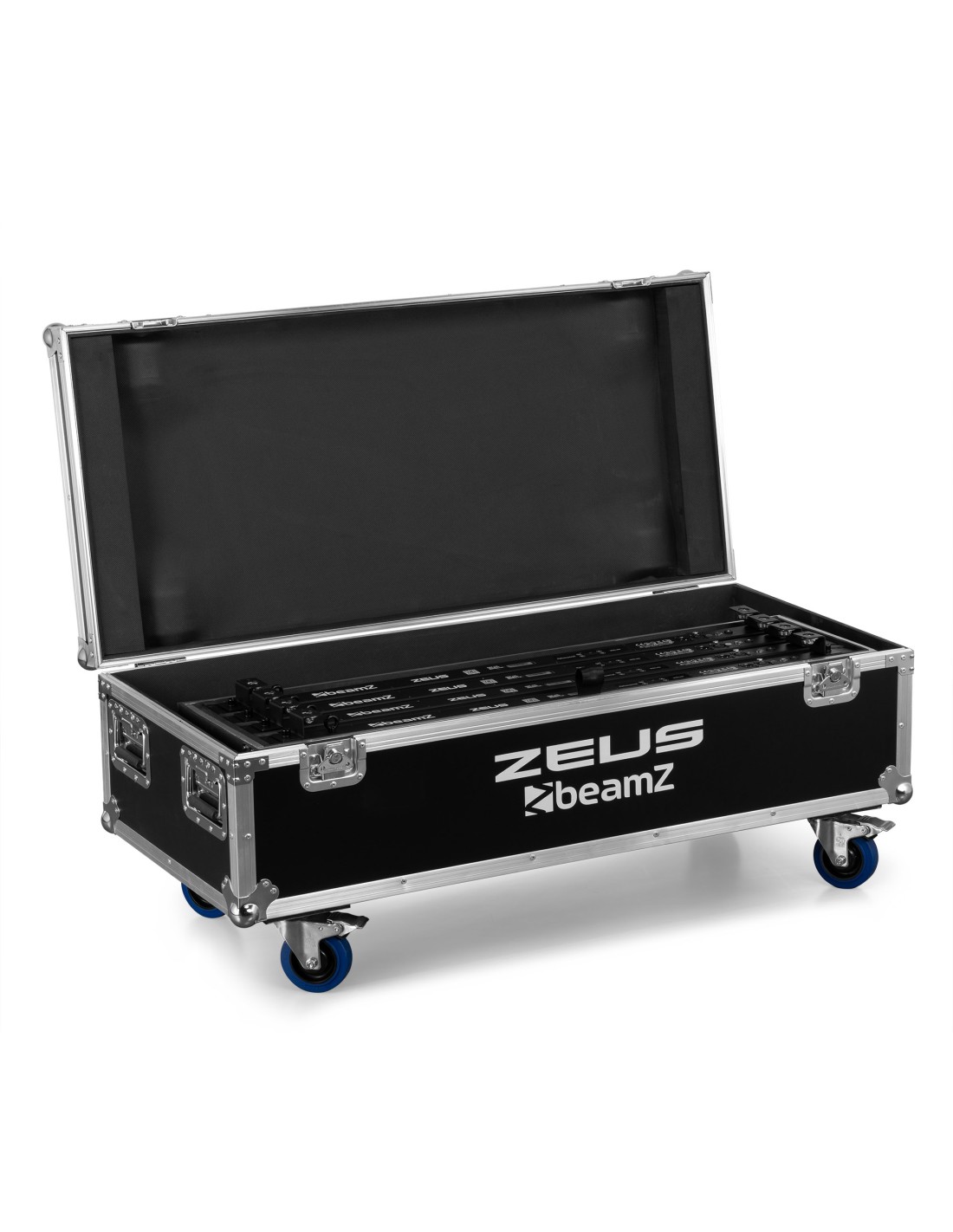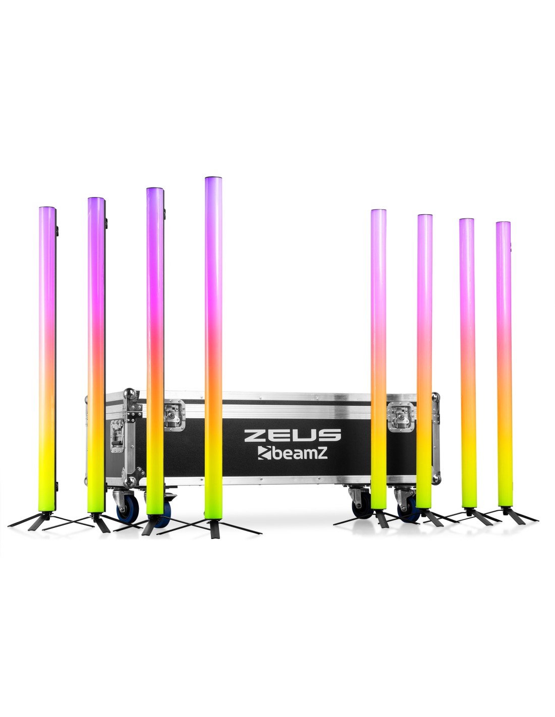 El kit de barra de tubo Zeus viene completo con ocho barras de tubo LED Zeus y todos los accesorios esenciales que necesita para su próxima sesión fotográfica o evento. Todos estos se almacenan en una caja de transporte protectora duradera con sistema de carga que también viene equipada con ruedas y asas para facilitar el transporte.
