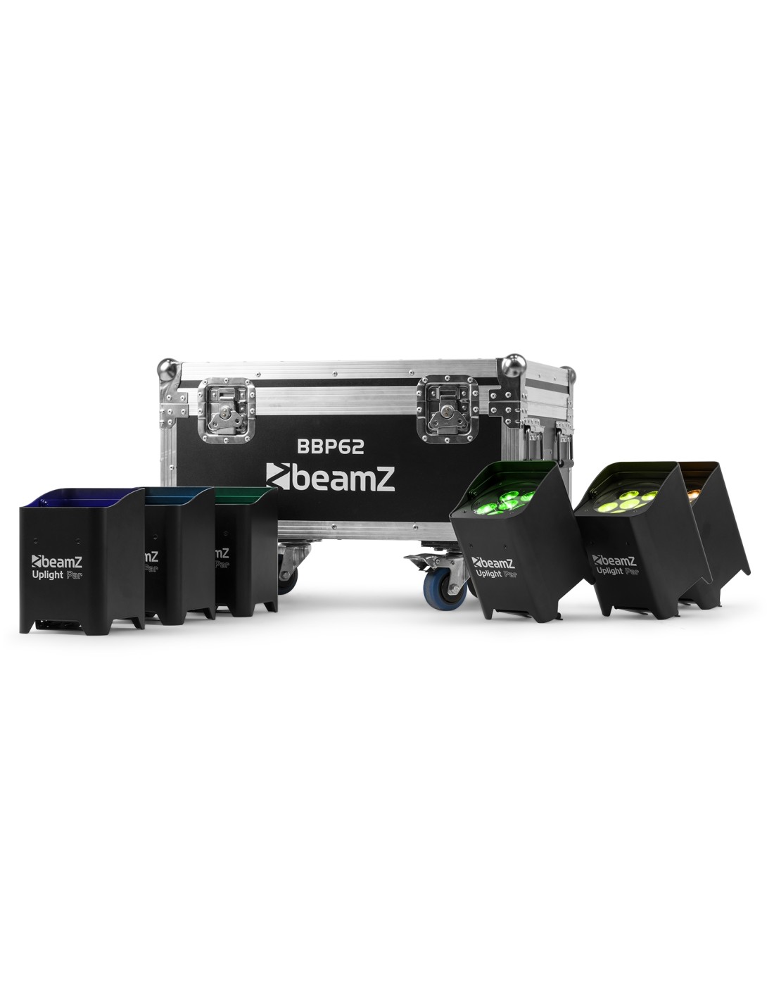 El BBP62 es un juego completo de 6 iluminadores de pared BBP62, entregados en un robusto estuche de transporte con estación de carga incorporada. Cada BBP62 está equipado con una potente batería que ofrece más de 20 horas de funcionamiento cuando está completamente cargada. Después de cada evento dentro o al aire libre, los dispositivos pueden simplemente volver a colocarse en el flightcase y recargarse durante la noche para el siguiente evento. Cada dispositivo está equipado con un conector de carga especialmente diseñado, lo que permite cargarlo directamente en el Flightcase. Simplemente conecta el Flightcase a una toma de corriente y listo.También se puede operar fácilmente a través de WIFI con la aplicación "LED LAMP".