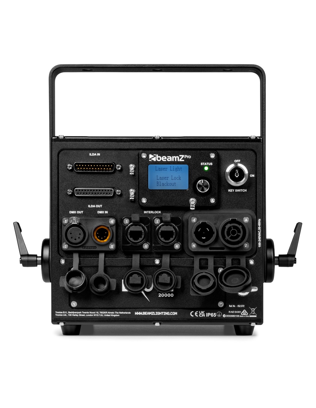 El Brute 20000 tiene una potencia de salida garantizada de 20 W y proporciona modulación analógica, lo que garantiza un desvanecimiento de color más suave y un espectro de color mucho más amplio. Combinando esta alta potencia con sus escáneres gráficos de precisión de 35K, el láser ofrece una precisión y una calidad de haz excepcionales, lo que lo hace muy adecuado para aplicaciones profesionales exigentes. El sistema se puede controlar a través de ILDA y DMX o funcionar de forma independiente en modo automático o activado por sonido. Con su carcasa con clasificación IP65, el Brute 20000 está totalmente protegido contra el polvo y el agua, lo que lo hace ideal para instalaciones tanto en interiores como en exteriores. Perfecto para instalaciones fijas, uso móvil, proyectos multimedia, aplicaciones exteriores de larga distancia y proyecciones gráficas ultraprecisas.