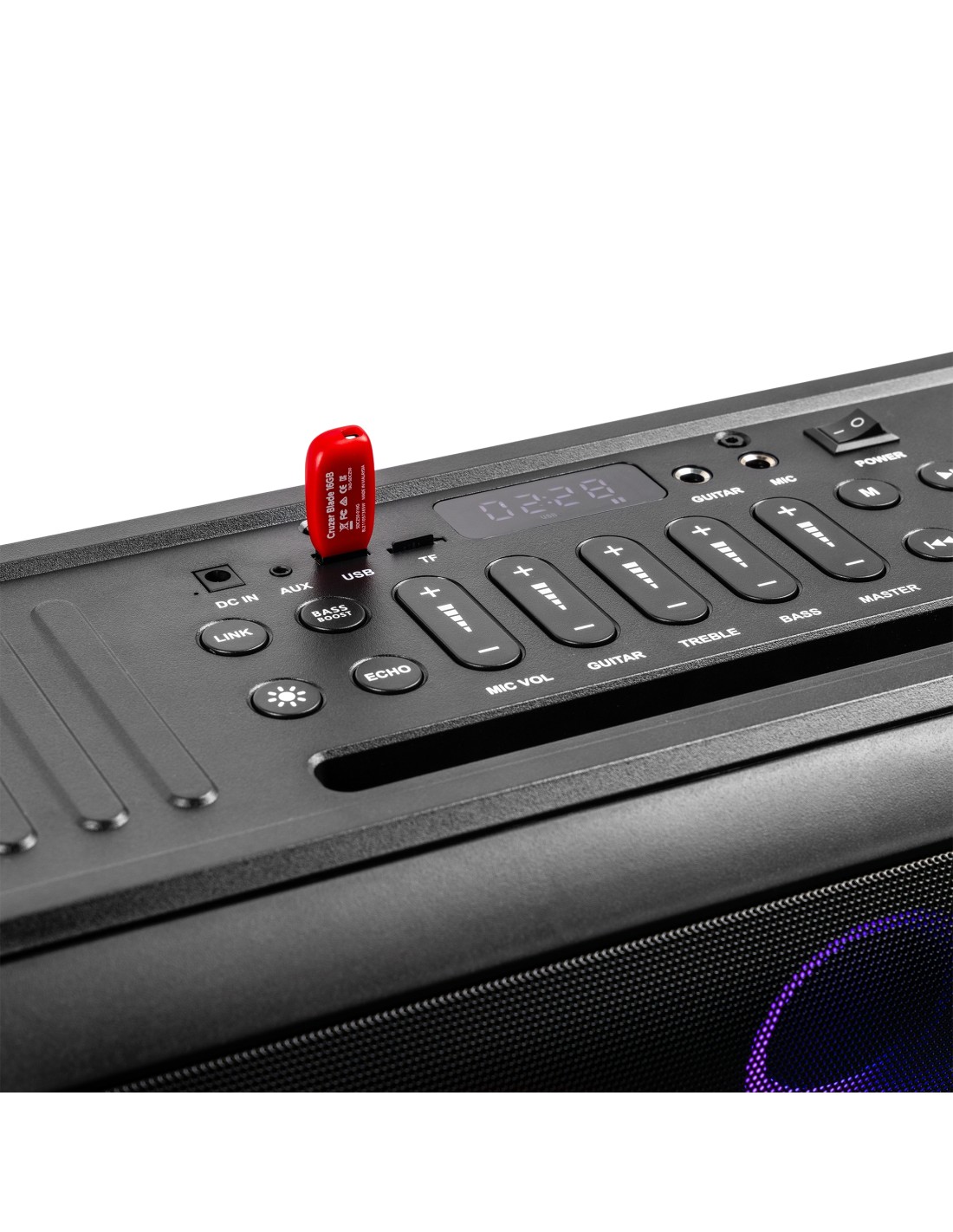 Si desea una durabilidad resistente y una conectividad infinita, entonces la serie Core Party Speaker hará que triunfe la fiesta, esté donde esté. Con un espectáculo de luces sincronizadas en el frente y un panel de control claro en la parte superior, un sonido estéreo fantástico y una batería incorporada, ¡este es un altavoz que se ve genial y suena aún mejor! Core Party Speaker, que se caracteriza por la avanzada tecnología inalámbrica BT, le brindará música de alta calidad y garantiza una señal nítida. ¡Emparejar su teléfono u otro dispositivo habilitado para BT es súper fácil! Entonces, si buscs alta potencia, gran sonido y un espectáculo de luces espectacular; Core Party Speaker ¡El iniciador de la fiesta!