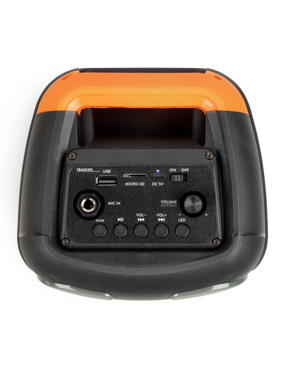 ¡Baila, canta y deja que la música te lleve! Lleva tu fiesta al siguiente nivel con el altavoz inalámbrico para fiestas Track310 que cuenta con una espectacular iluminación LED para fiestas sincronizada con el ritmo en todo el frente. Gracias a la batería recargable incorporada, al micrófono suministrado y a numerosas opciones de entrada; USB, tarjeta micro SD, BT streaming y conexión para micrófono incorporado, podrás cantar fácilmente todas tus canciones favoritas. También es posible conectar de forma inalámbrica dos altavoces Track310 para crear un sonido estéreo aún más potente. Ideal para entretenimiento en casa, karaoke, escuelas, fiestas o muchas otras aplicaciones.